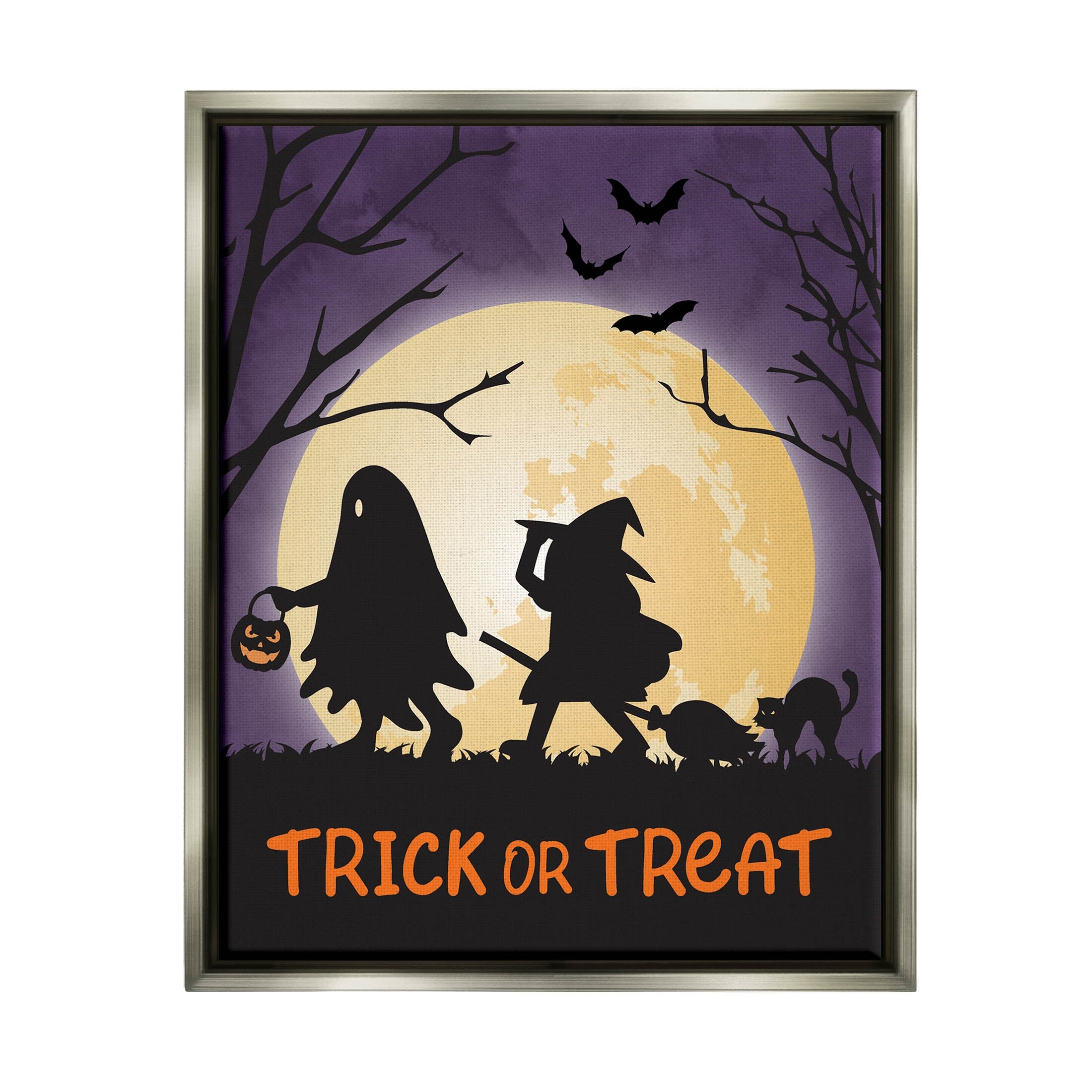 Stupell Trick Or Treat Halloween Silhouettes Framed Floater Canvas Wall Art, Design by Linda Birtel