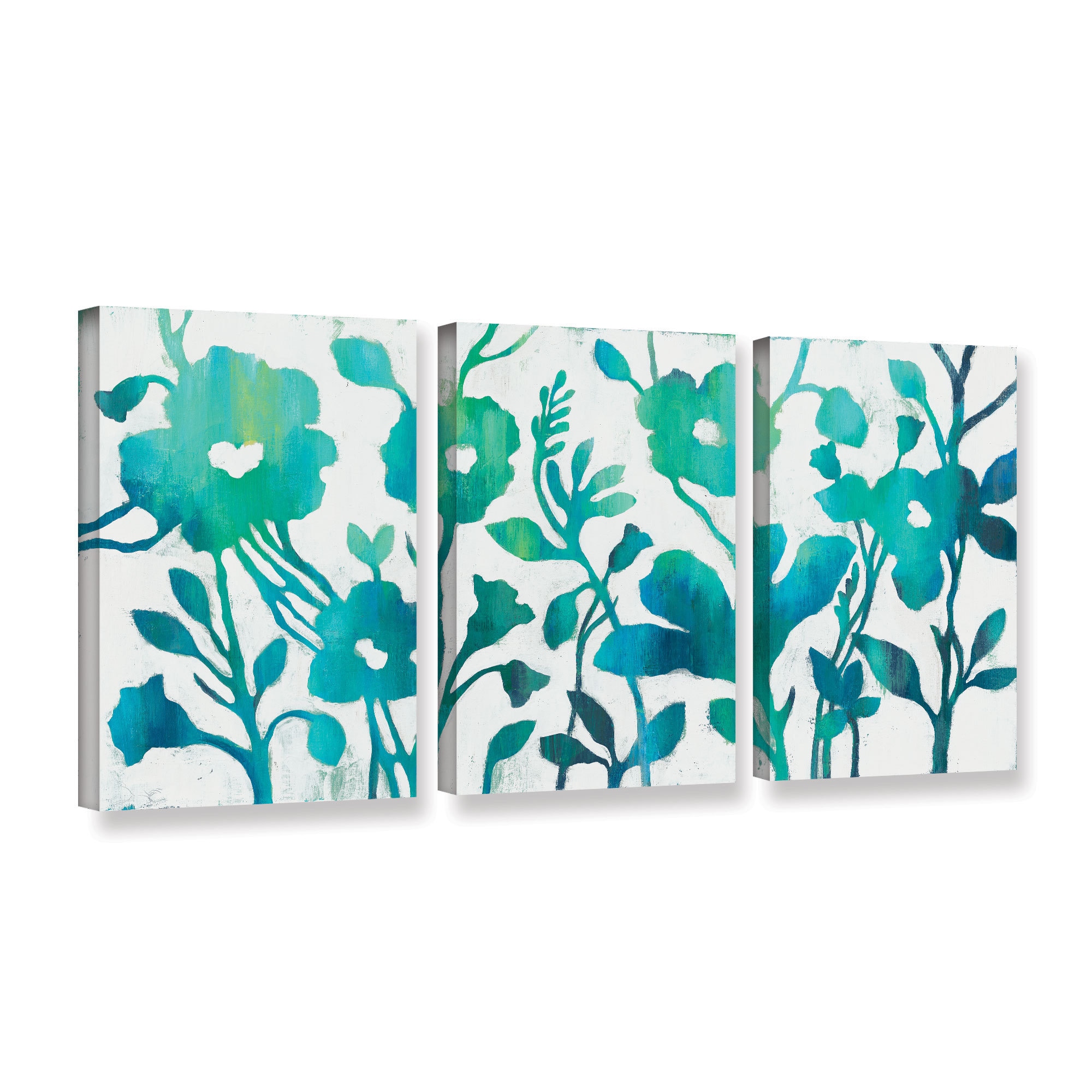 Silvia Vassileva's 'Teal Trio I on White' 3 Piece Gallery Wrapped Canvas Set