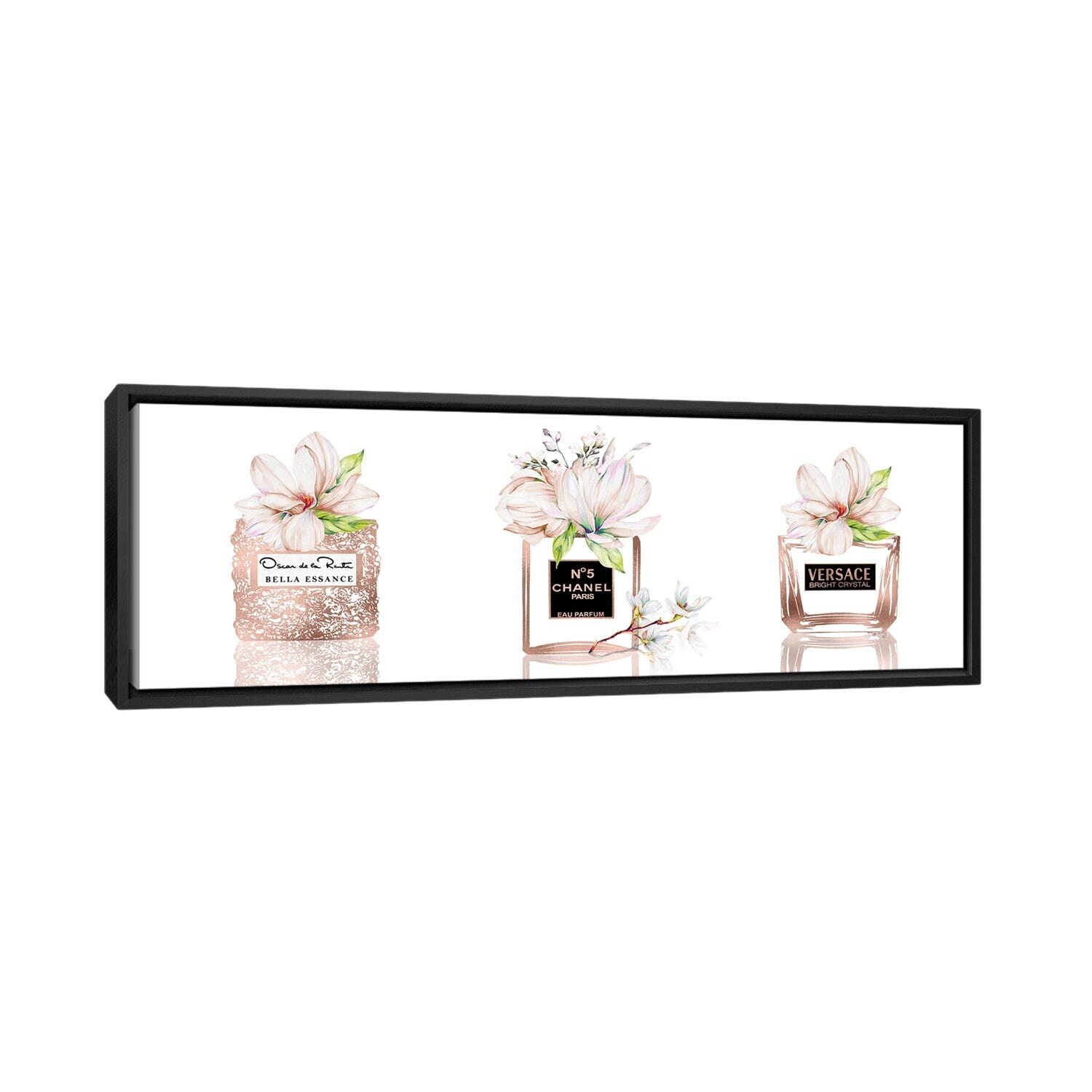 iCanvas "Ravishing Rose Gold Perfume Bottle Trio With Magnolias" by Pomaikai Barron Framed