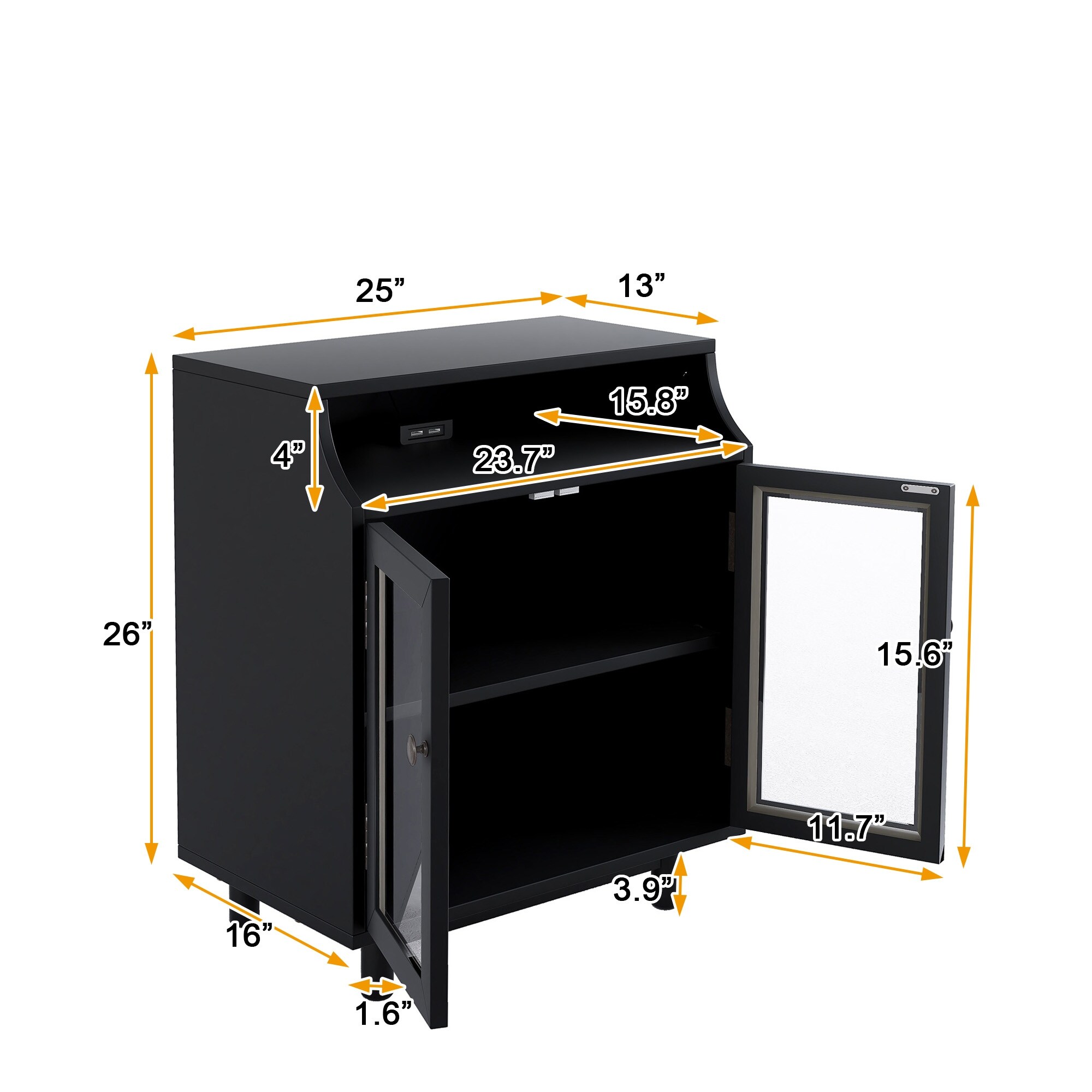 Nightstand with Storage Shelves and Cabinets,Glass Door,USB Design