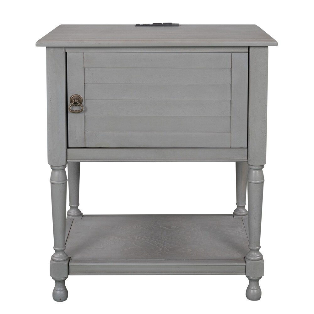 Versatile Nightstand with an Open Storage, USB Charging Design ,Gray