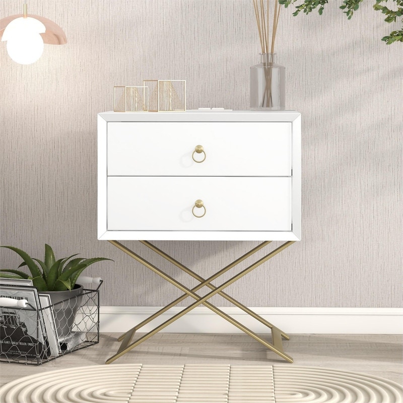 Nightstand with 2 Drawers & Golden Handle, Storage Bedside Table with USB Charging Ports