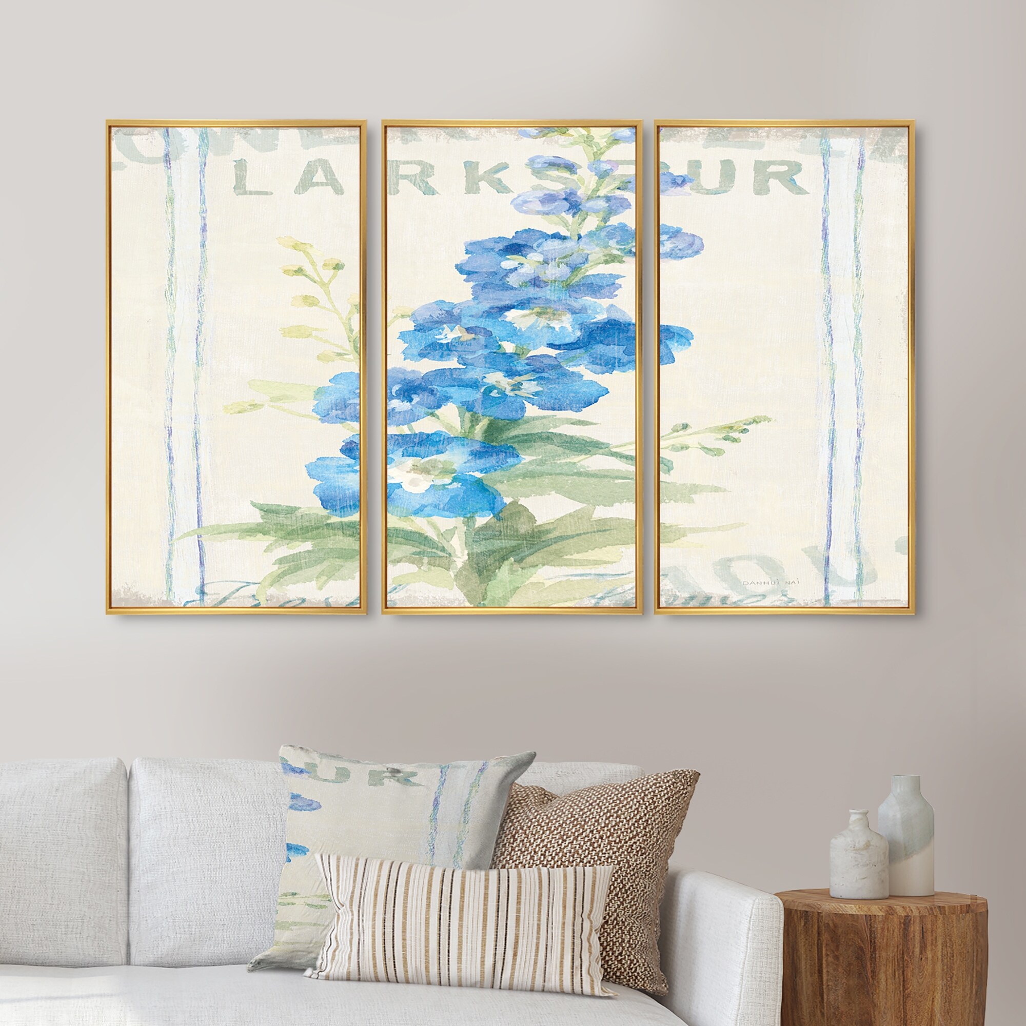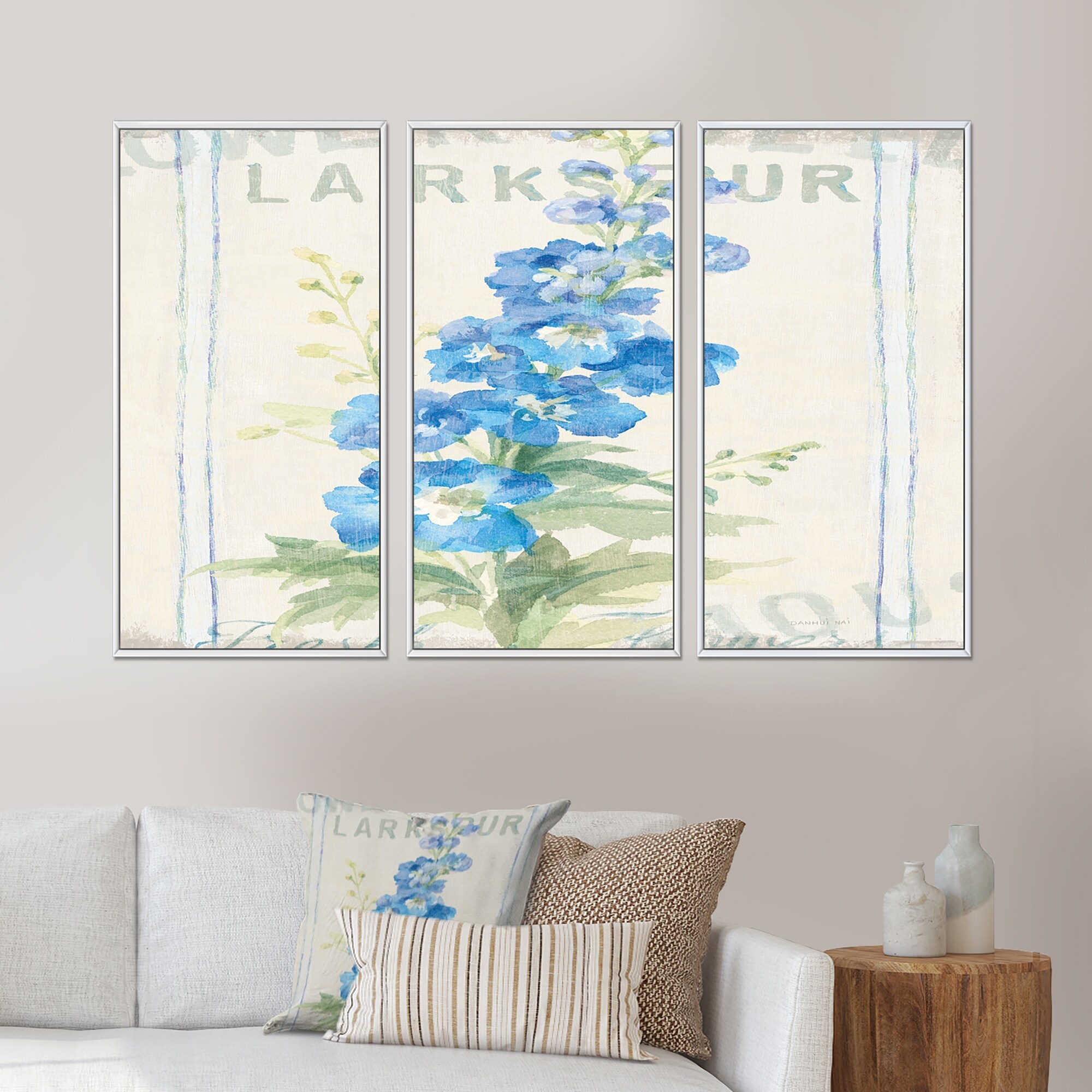Designart "Floursack Florals VII" Farmhouse Framed Wall Decor Set of 3 - 4 Colors of Frames