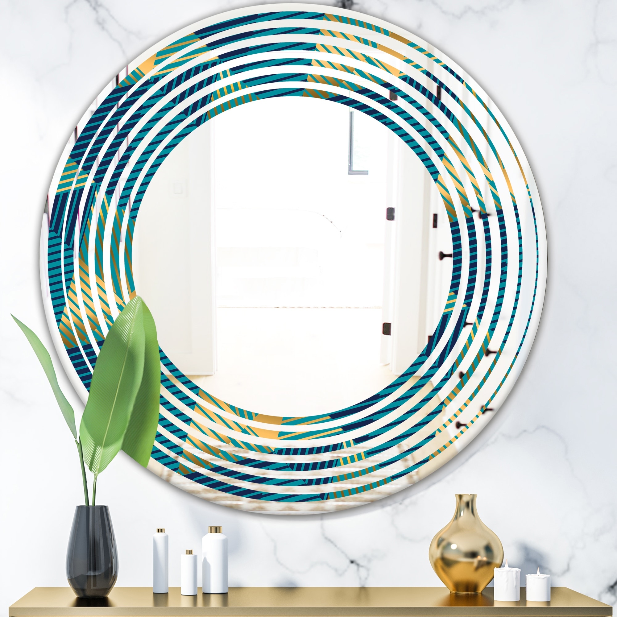 Designart 'Retro Luxury Waves in Gold and Blue VII' Printed Modern Round or Oval Wall Mirror - Wave