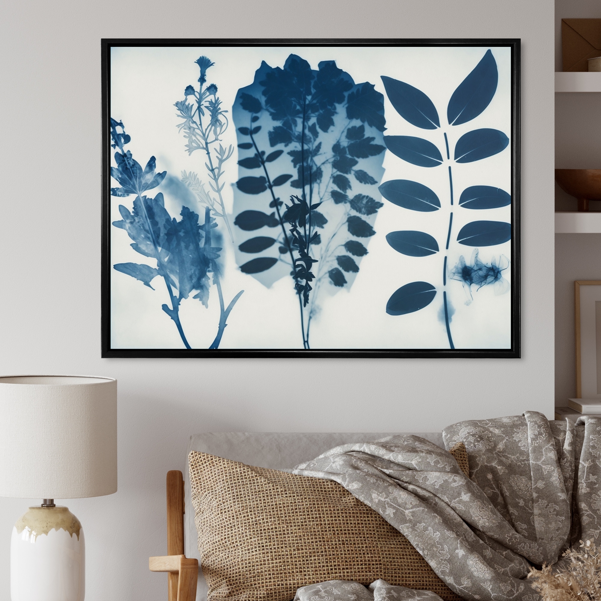 Designart "Retro Wildflowers in Shades of Blue VII" Floral Framed Canvas Wall Art Print