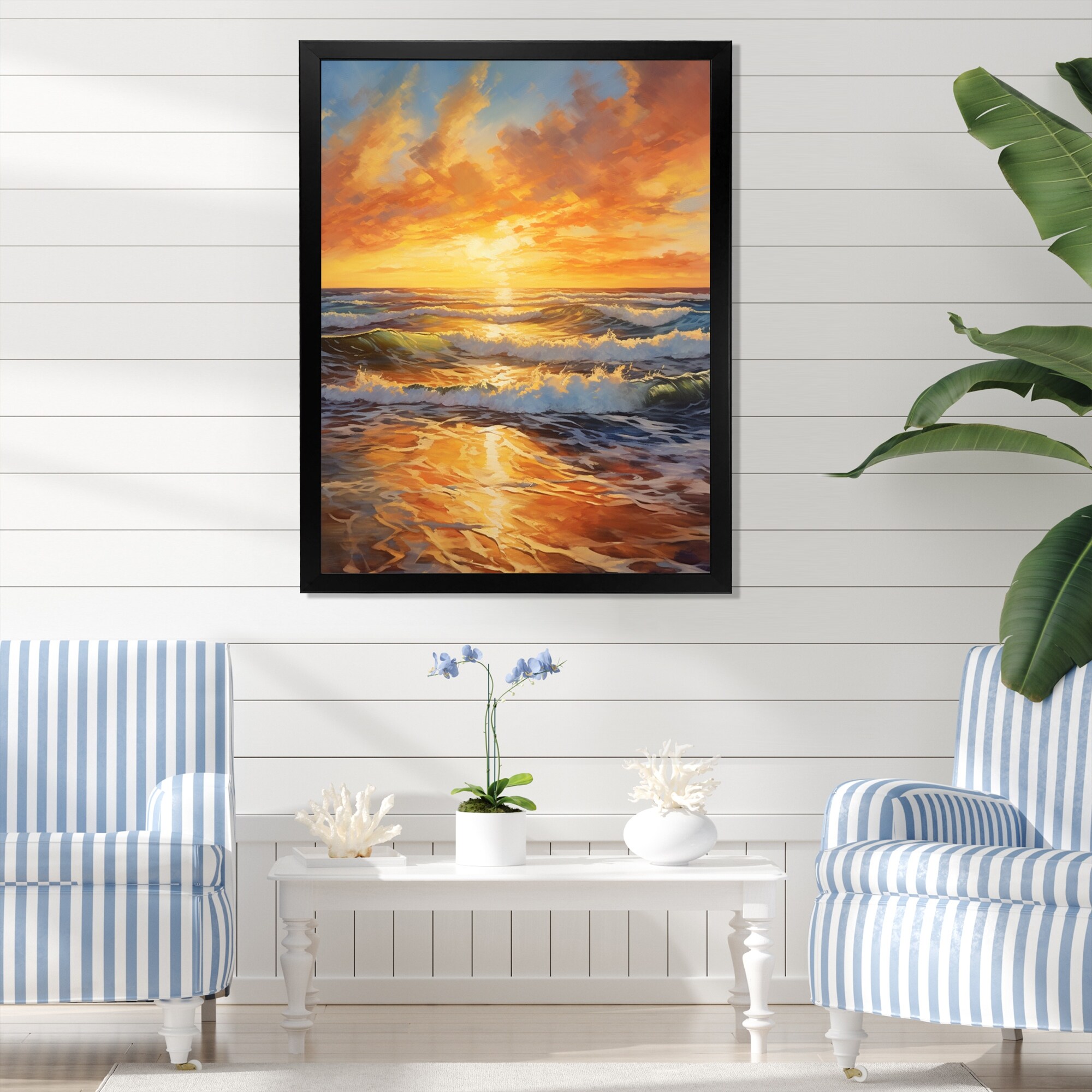 Designart "Beach Photo Sunlit Horizons VII" Beach Framed Wall Art Living Room