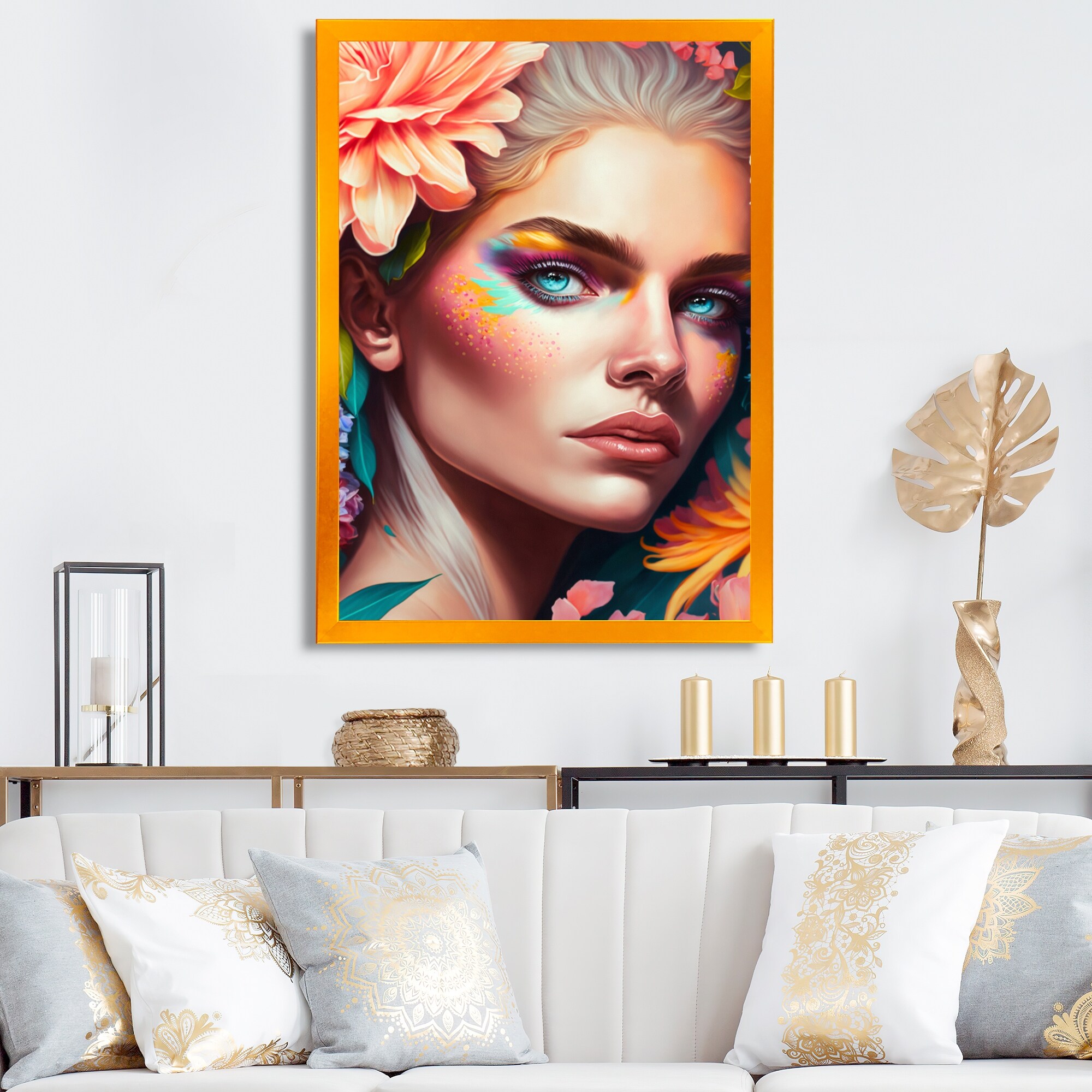 Designart "Floral Sensual Woman Portrait VII" Contemporary Glam Framed Art Print