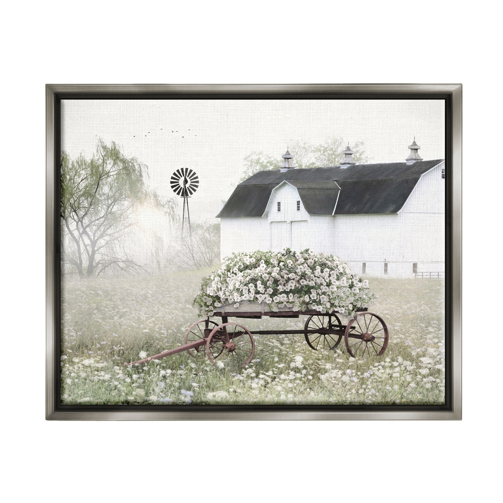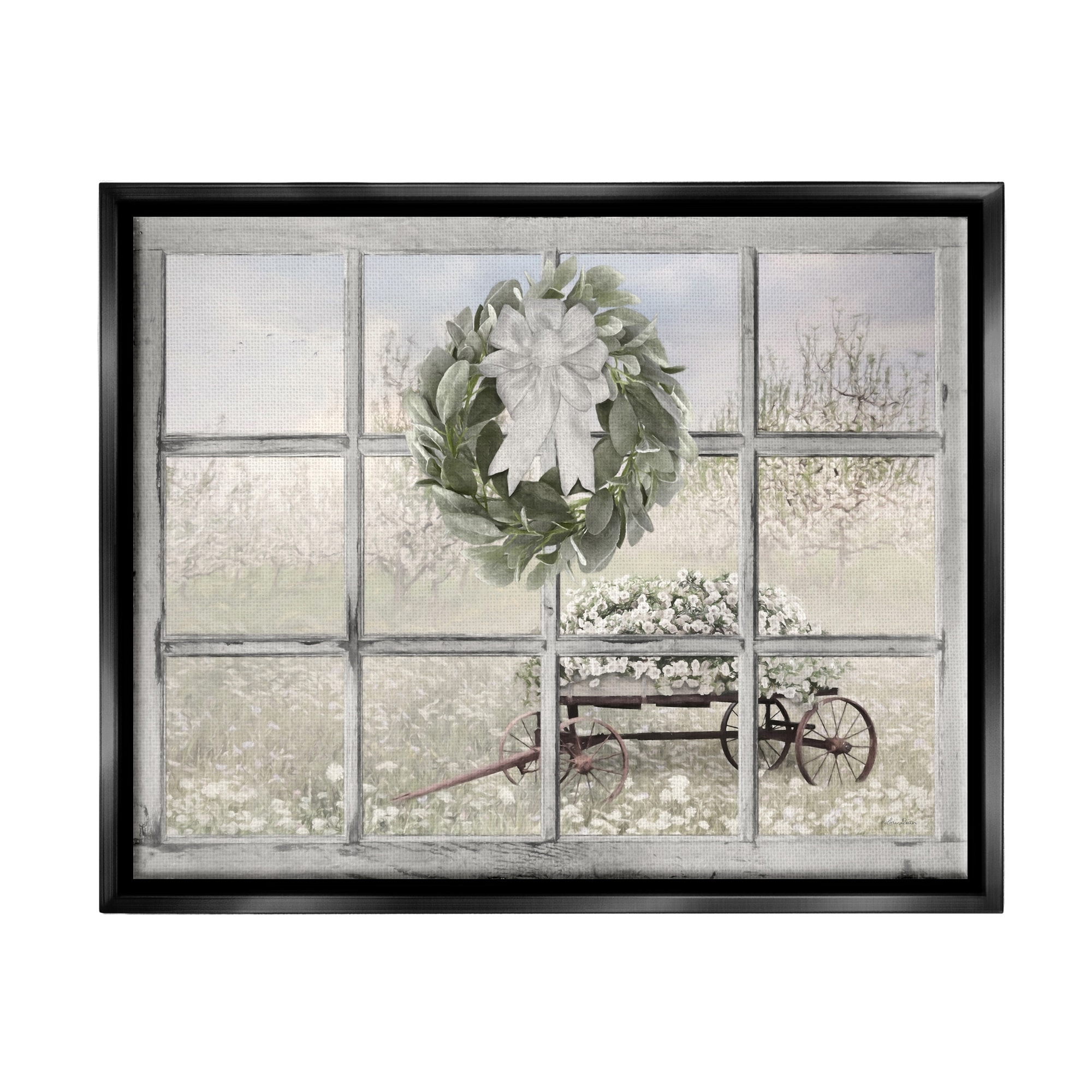 Stupell Industries Rustic Meadow Floral Wagon Framed Floater Canvas Wall Art by Lori Deiter