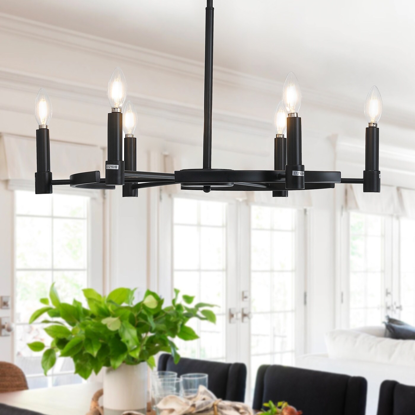 Farmhouse Black 6-Light Wagon Wheel Candle Style Chandelier