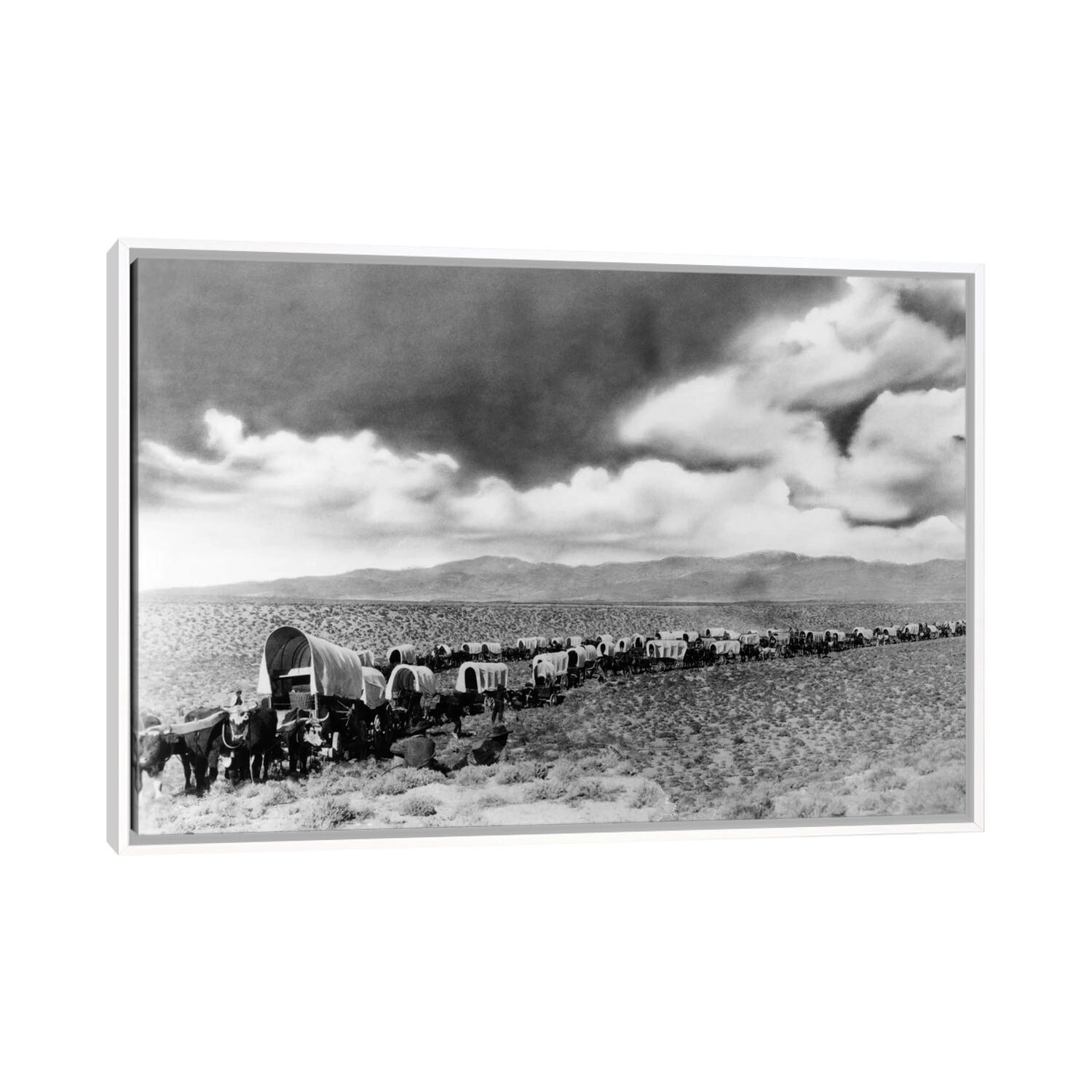 iCanvas "1870s-1880s Montage of Covered Wagons Crossing the American Plains" by Vintage Images Framed Canvas Print