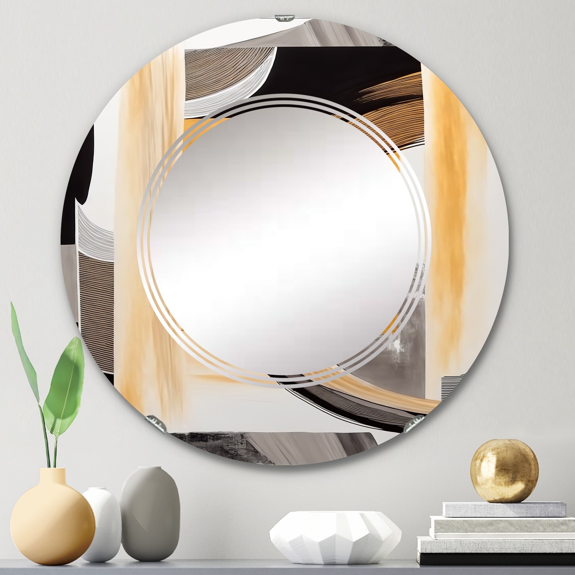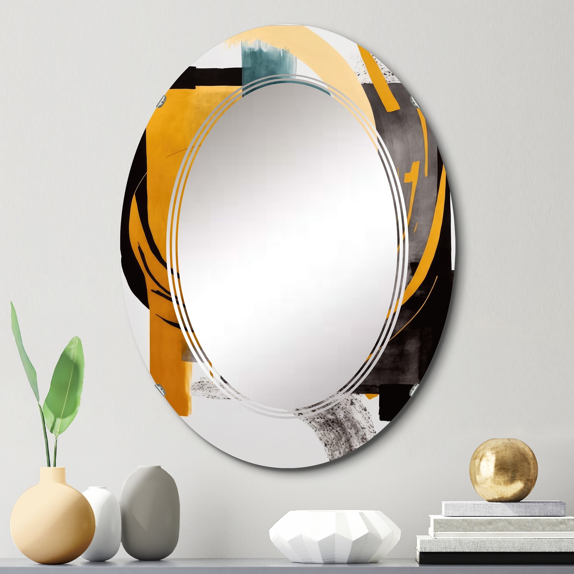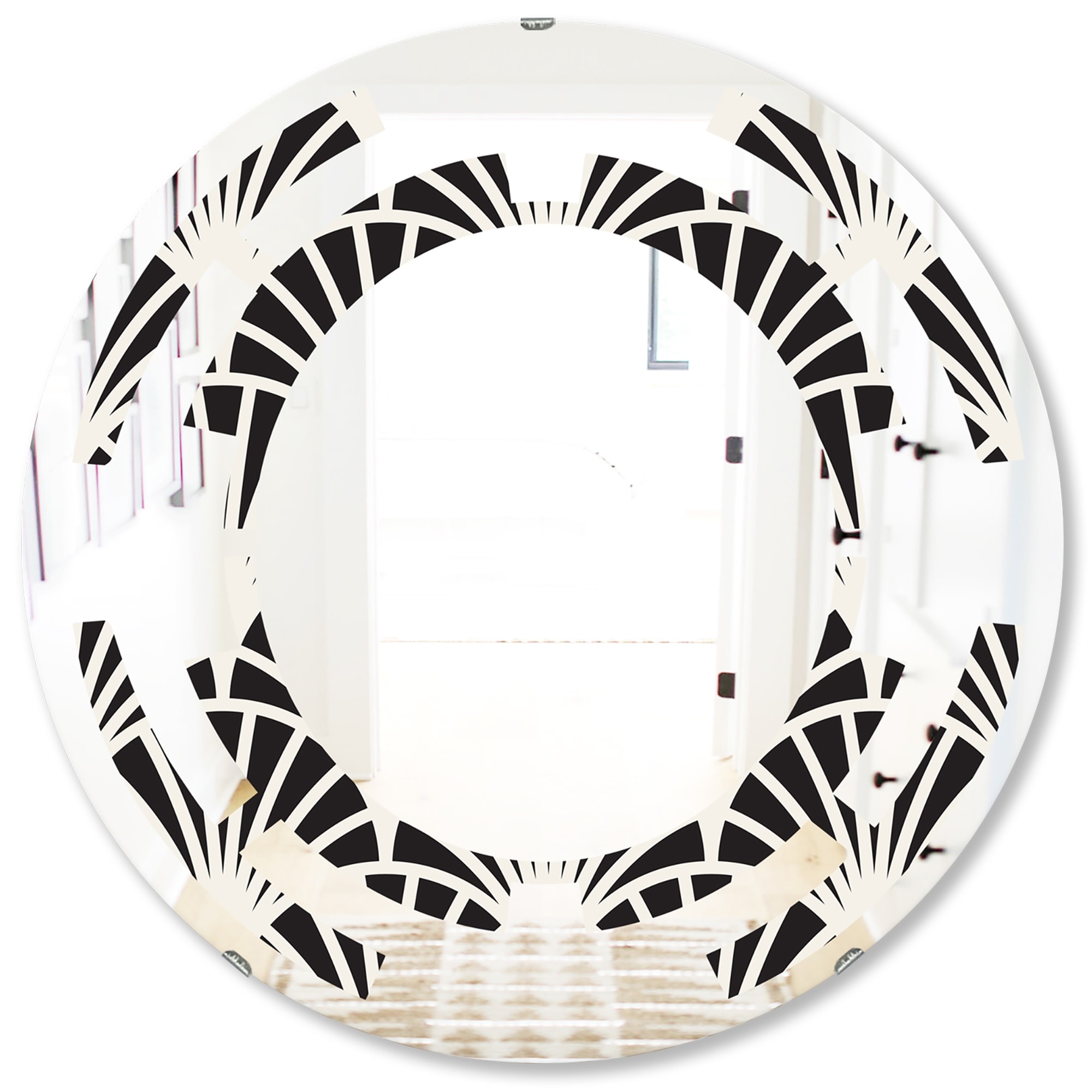 Designart 'Art Deco Seal pattern' Printed Modern Round or Oval Wall Mirror - Whirl
