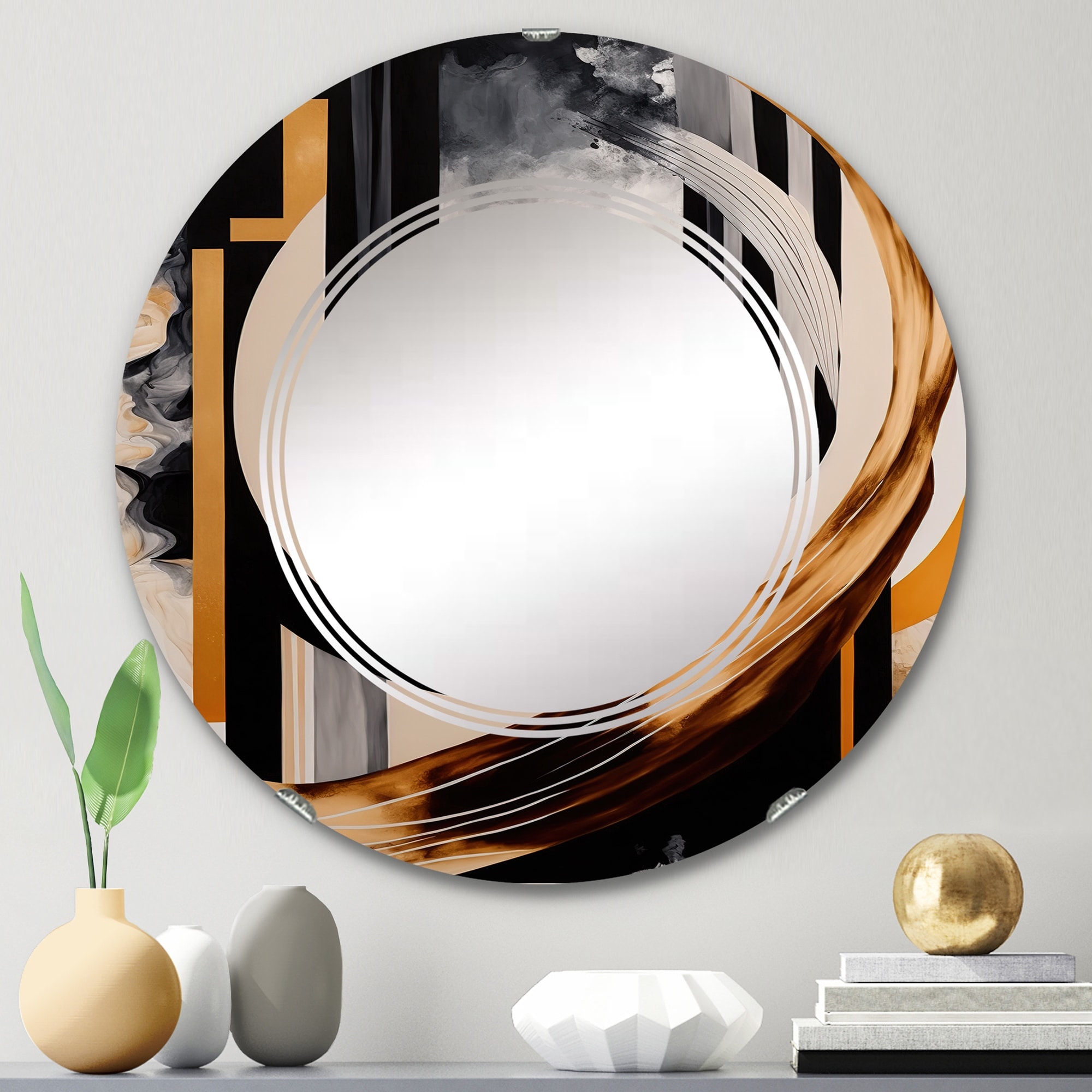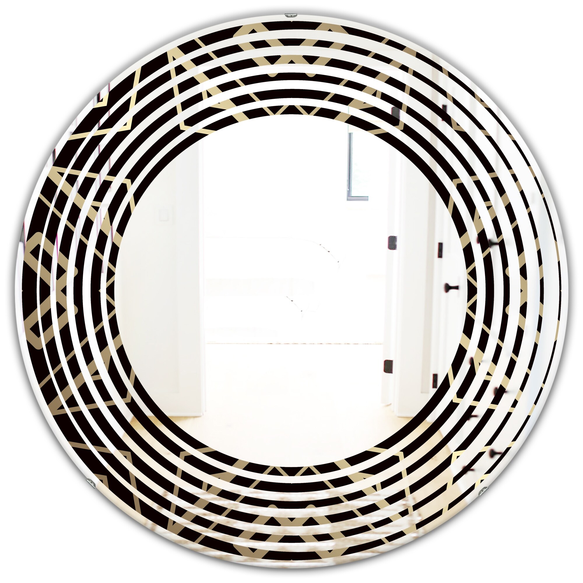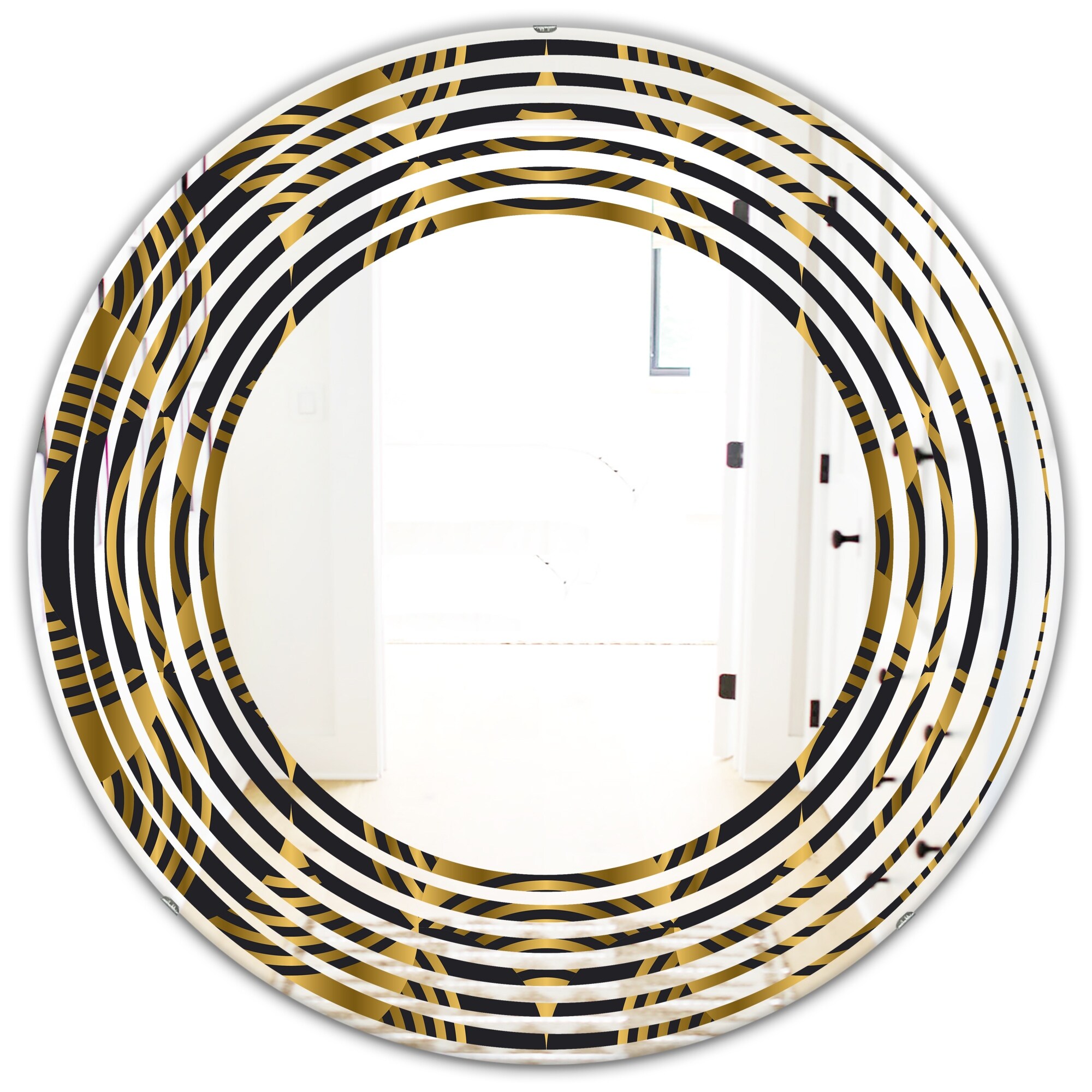 Designart 'Gold and Black Art Deco Pattern' Printed Modern Round or Oval Wall Mirror - Wave
