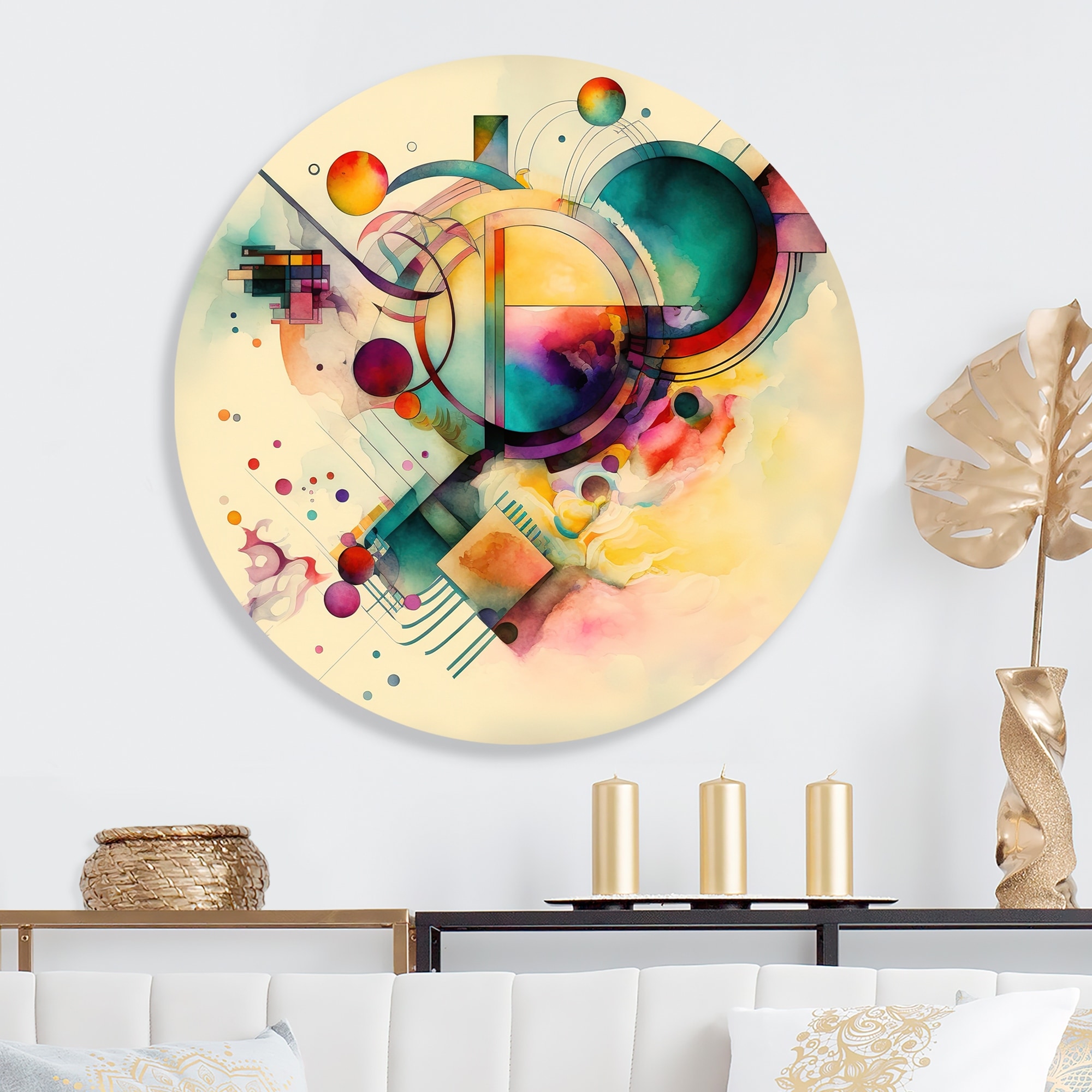 Designart 'Pastel Watercolor Art Deco II' Modern Metal Round Wall Art