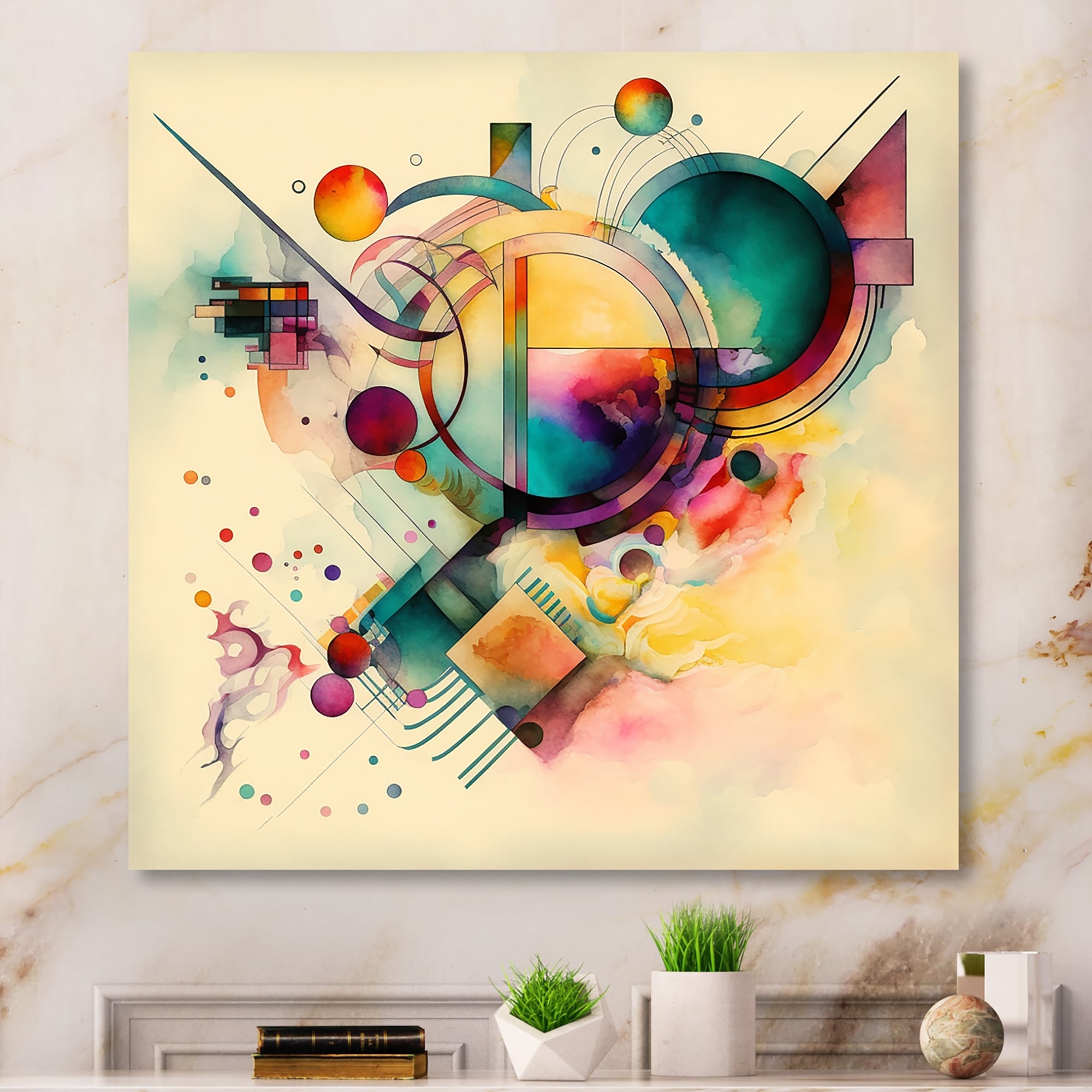 Designart 'Pastel Watercolor Art Deco II' Modern Canvas Wall Art