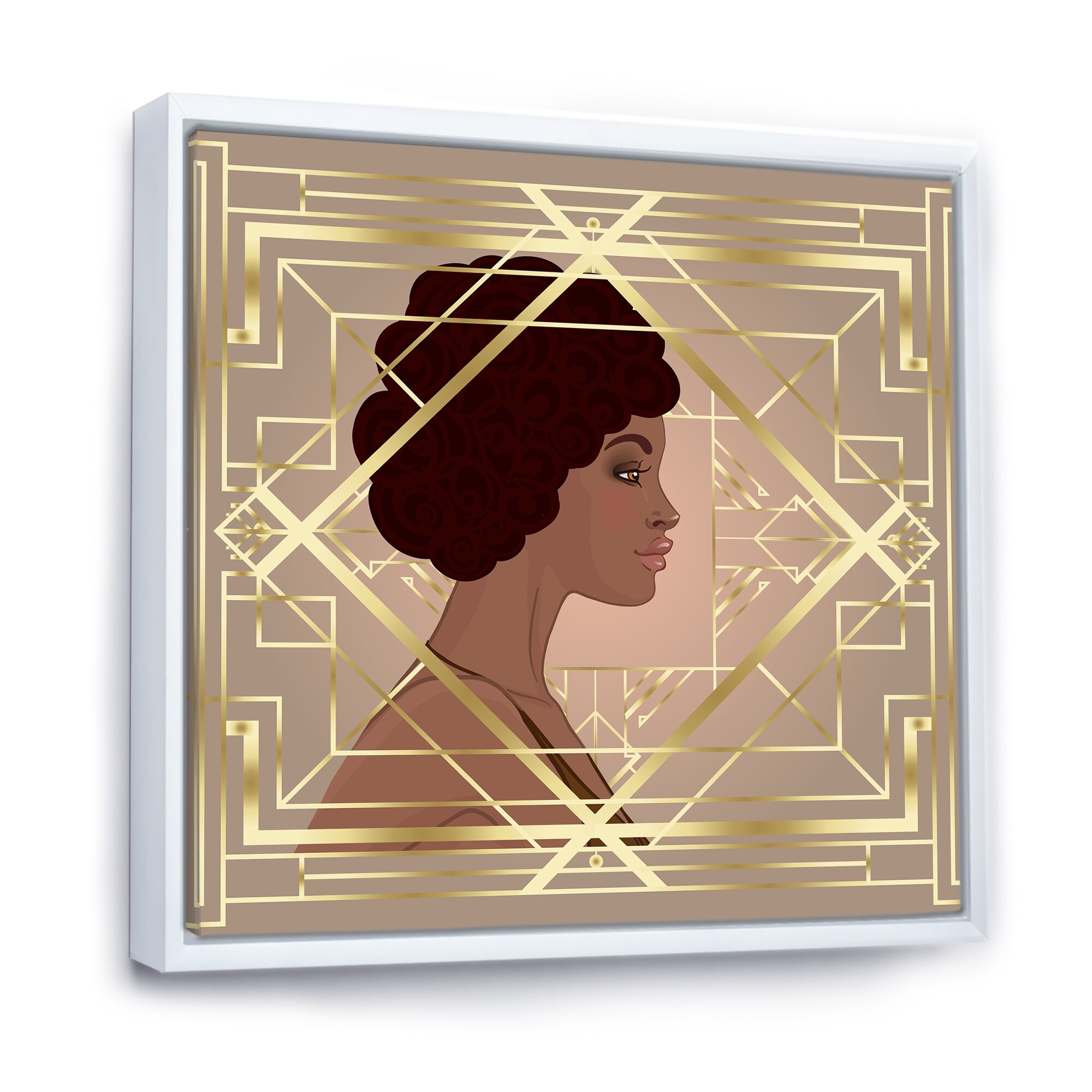 Designart "Retro Women in Golden Art Deco Geometrics II" Modern Framed Canvas Wall Art Print