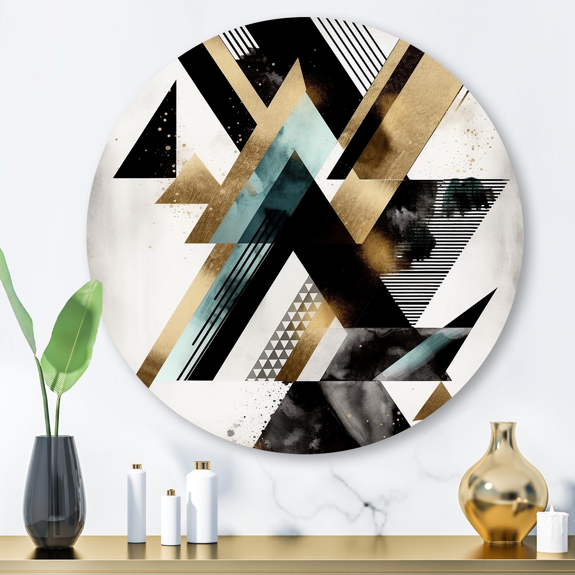 Designart "Art Deco Triangle" Abstract Metal Round Wall Art