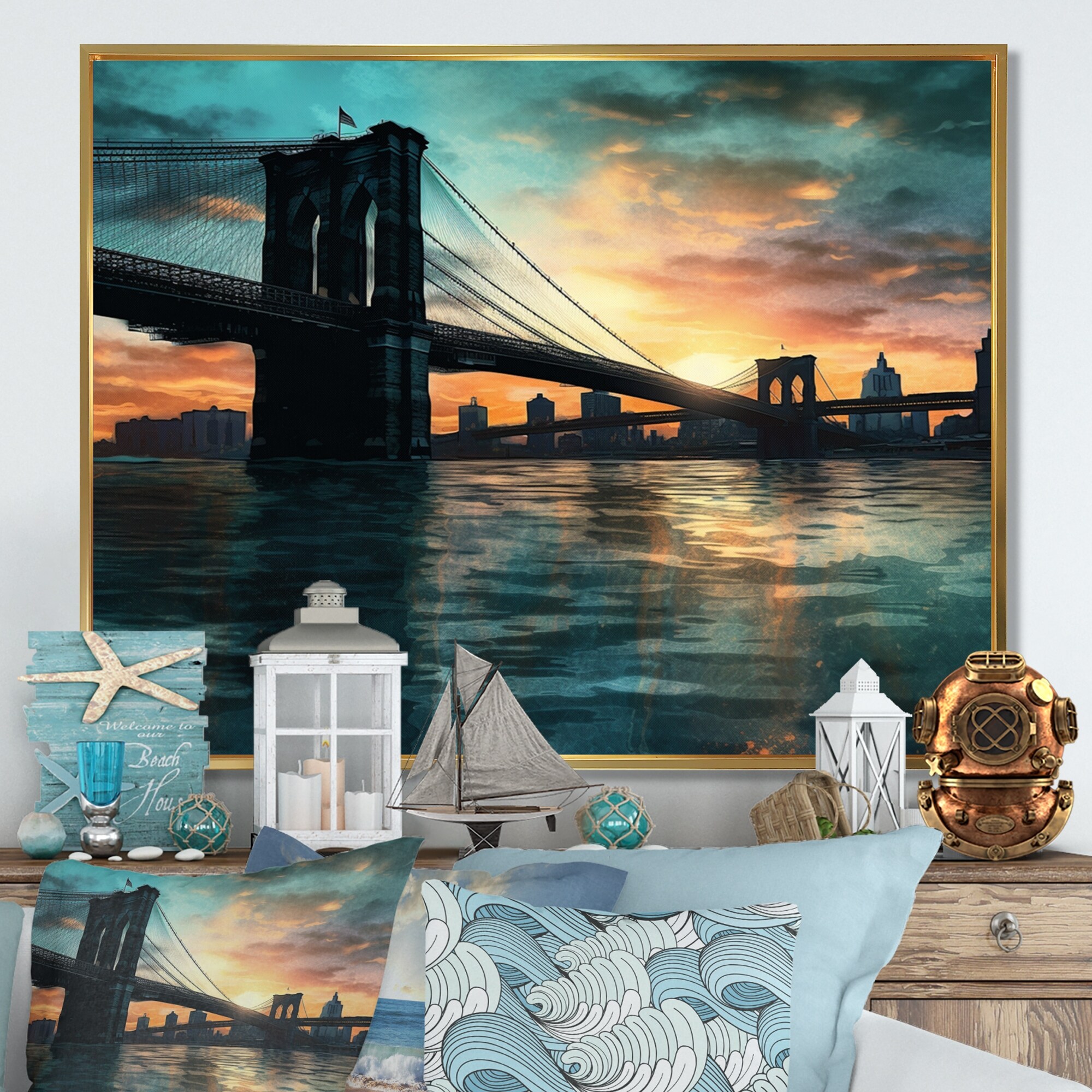 Designart "Blue And Orange Elegance in Expanse" City Art Deco Canvas Wall Art