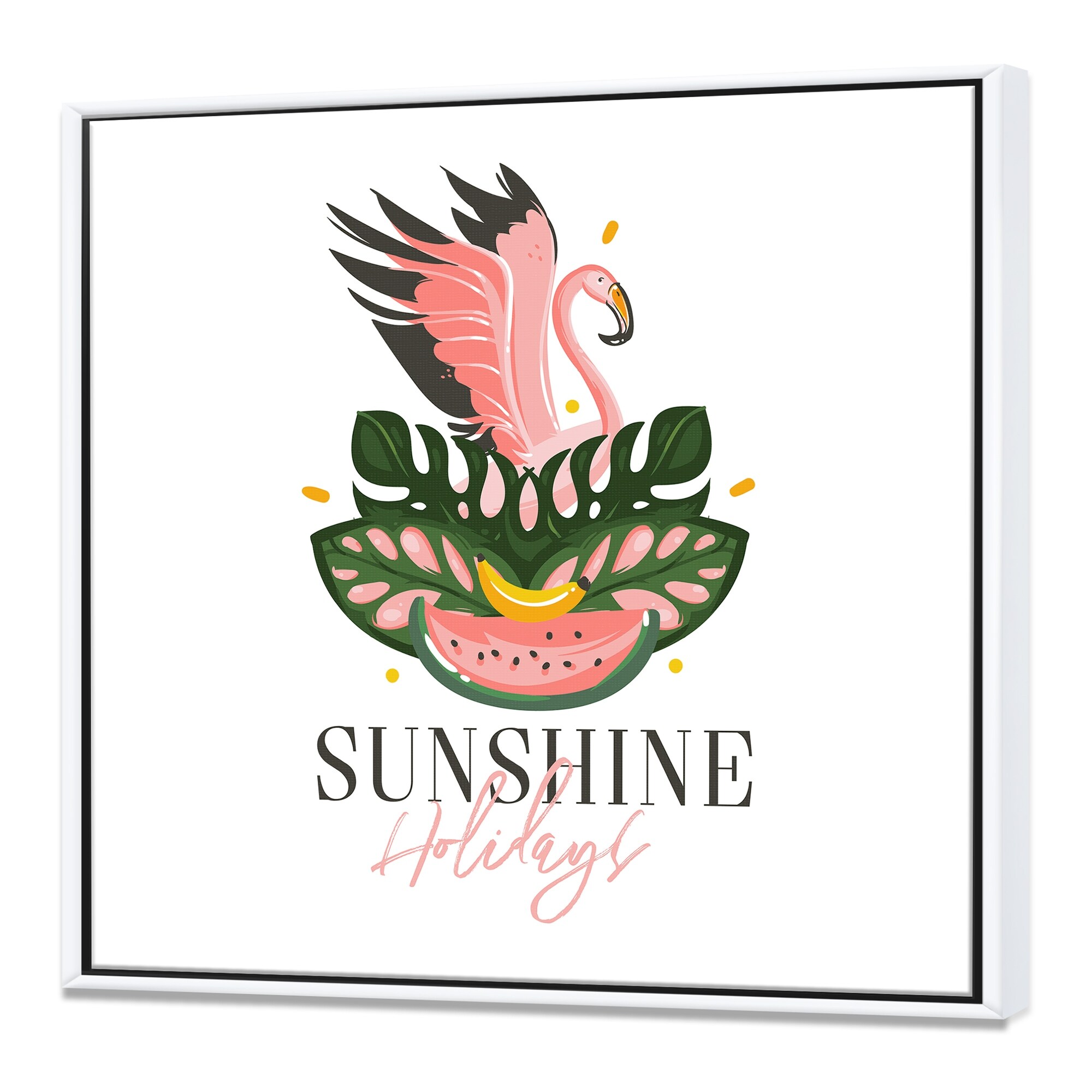 Designart "Hand Drawn Tropical Sign With FLamingo Bird Watermelon" Modern & Contemporary Framed Canvas Wall Art Print