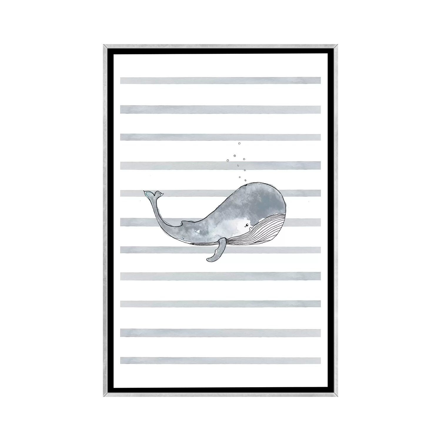 iCanvas "Whale Right Stripes I" by Leah Straatsma Framed