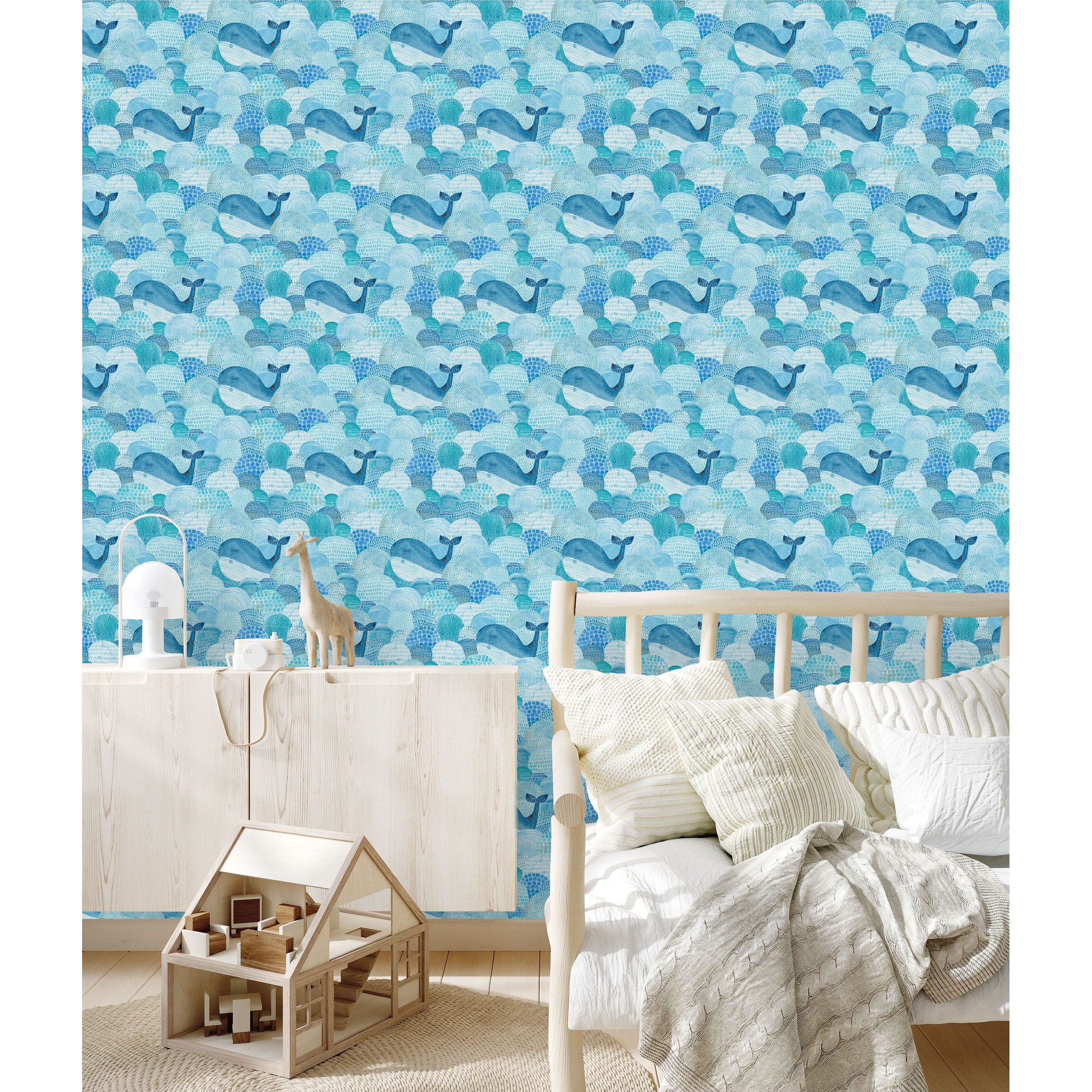 WHALES BLUE Kitchen Mat By Becky Bailey