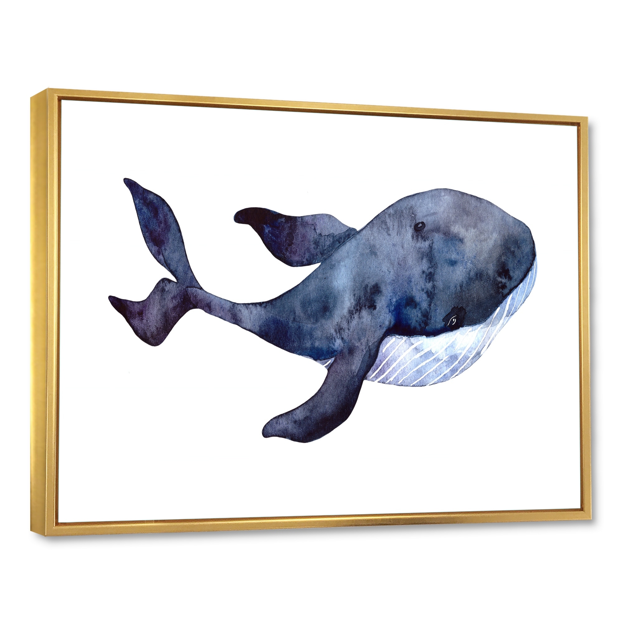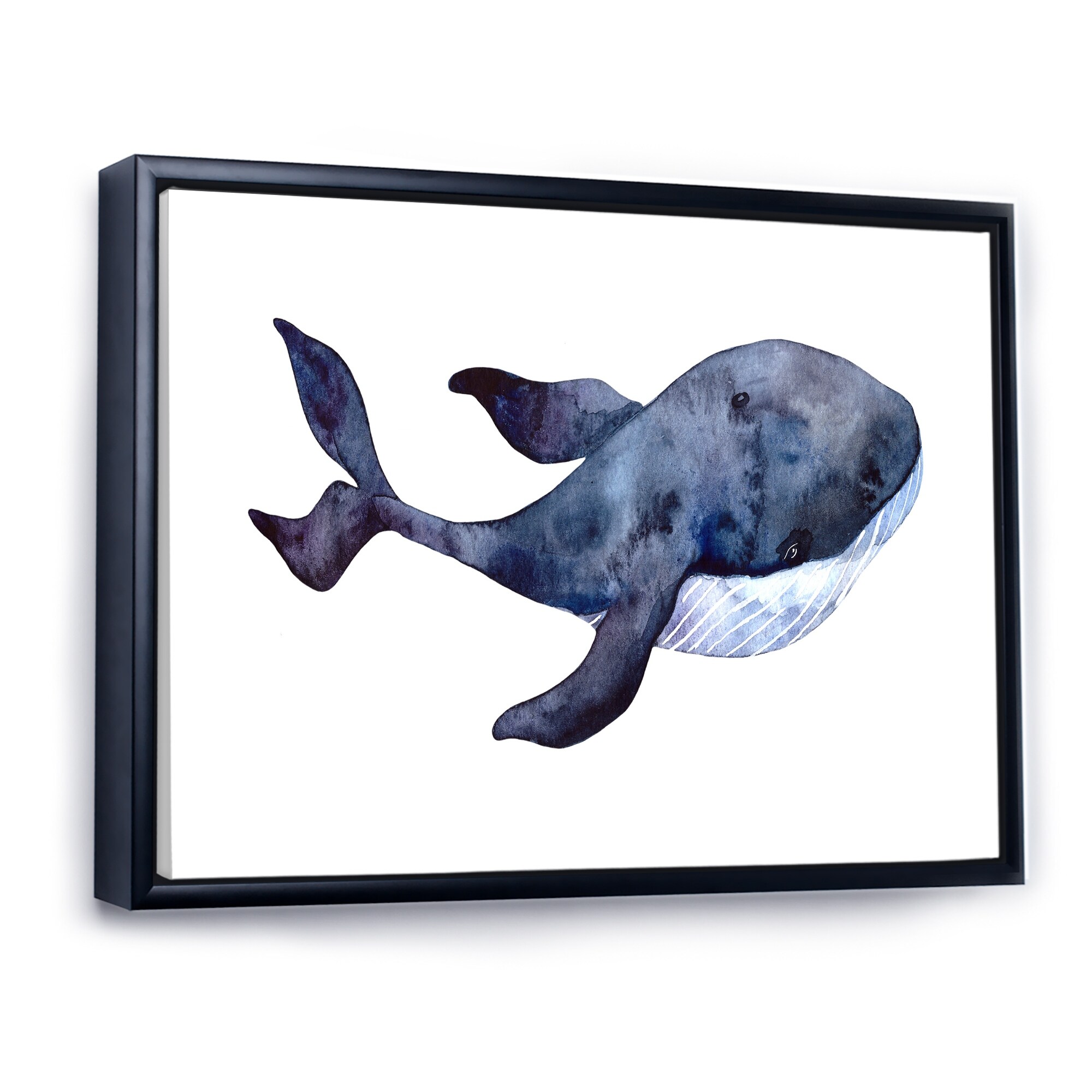 Designart "Blue Whale on White II" Nautical & Coastal Framed Canvas Wall Art Print