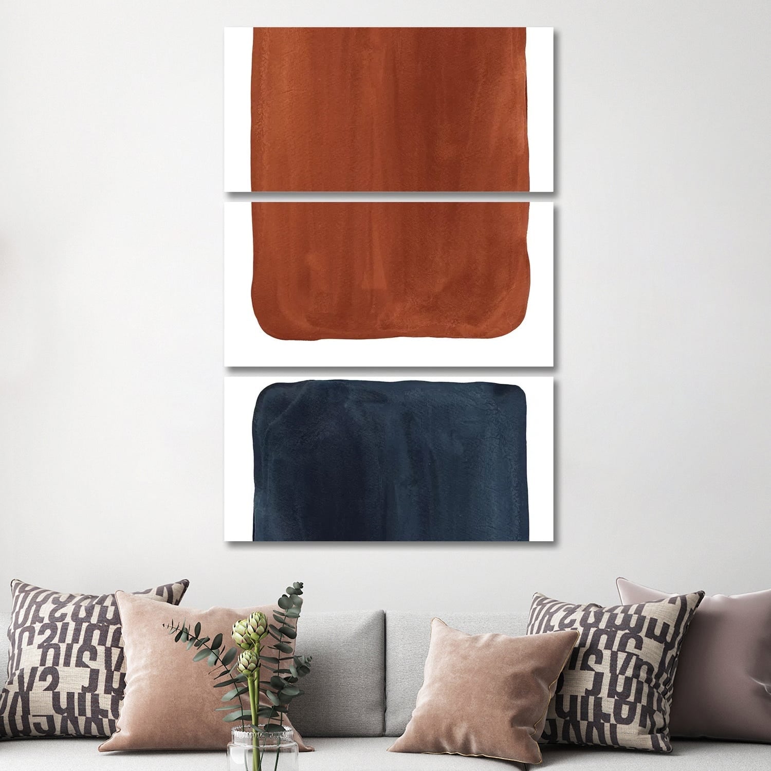 iCanvas "Navy Blue And Terracotta Geometric Watercolor" by Whales Way 3-Piece Canvas Wall Art Set