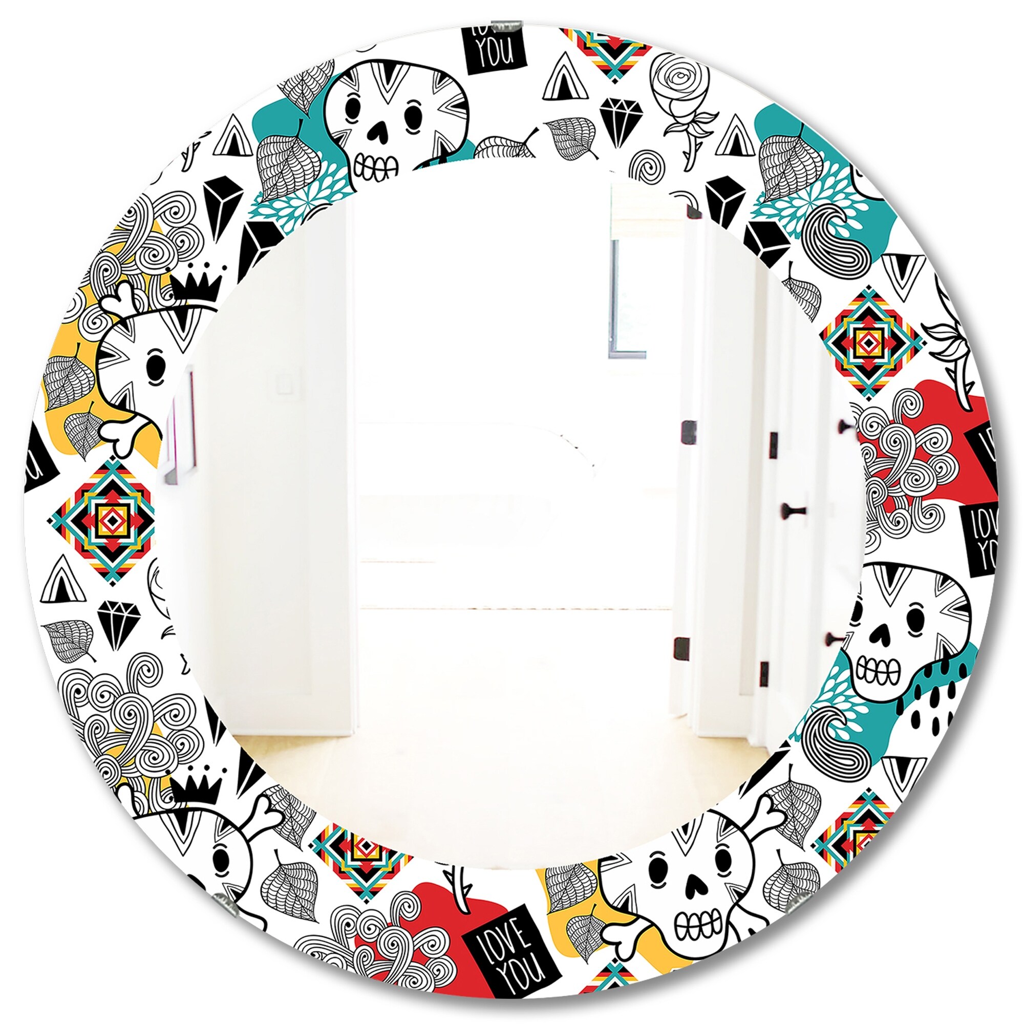Designart 'Whales Pattern' Printed Traditional Oval or Round Wall Mirror - Blue