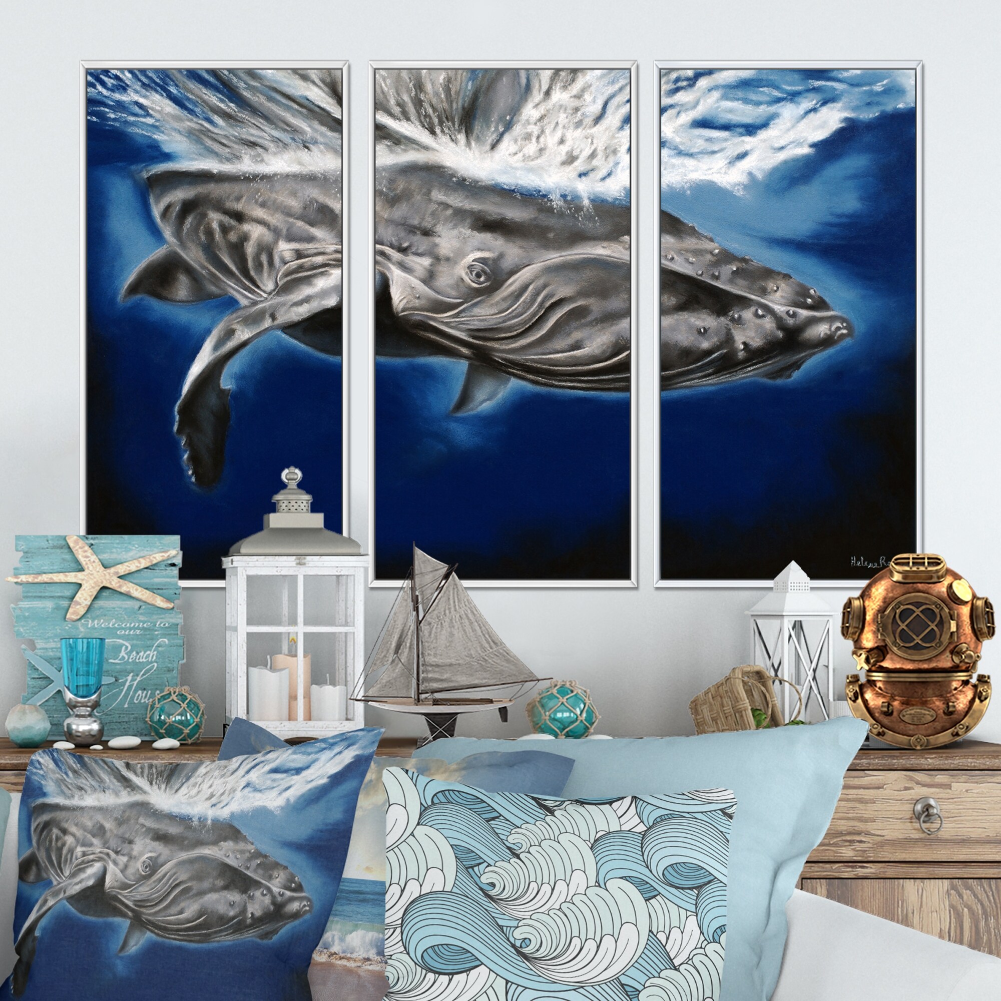 Designart "Portrait Of a Humpback Whale" Nautical & Coastal Framed Wall Art Set of 3 - 4 Colors of Frames
