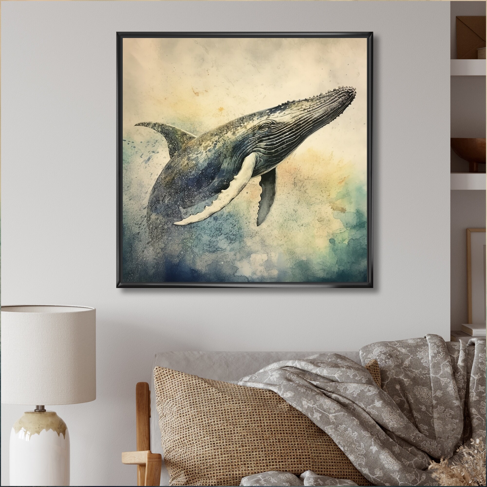 Designart "Graceful Whale" Animal Whale Framed Canvas Wall Art