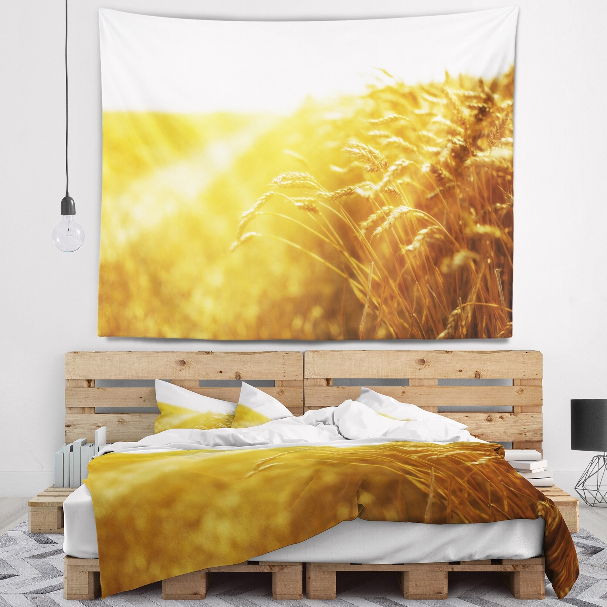 Designart 'Bright Sunset over Wheat Field' Landscape Wall Tapestry