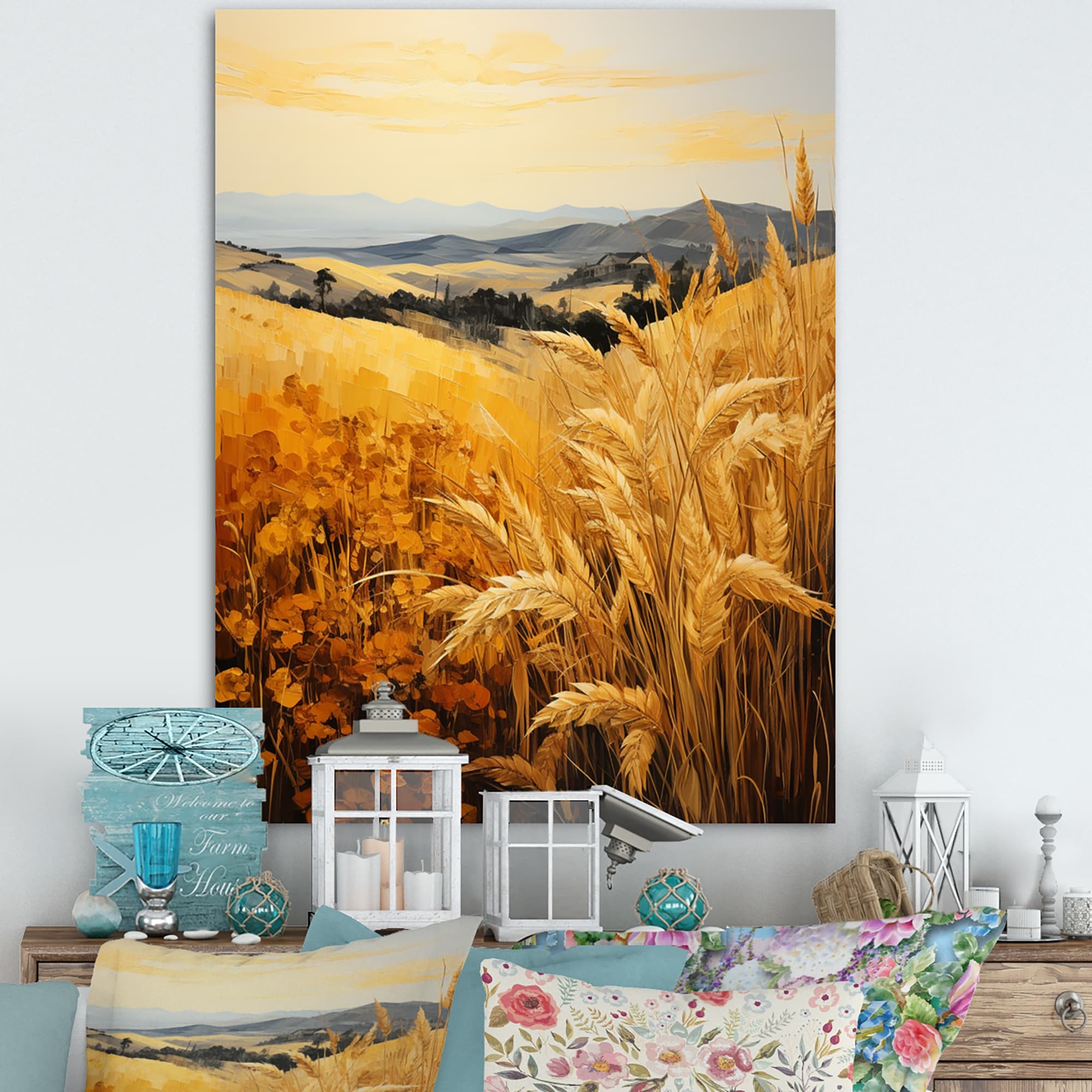 Designart "Countryside Wheat And Pastel III" Countryside Wall Art Living Room