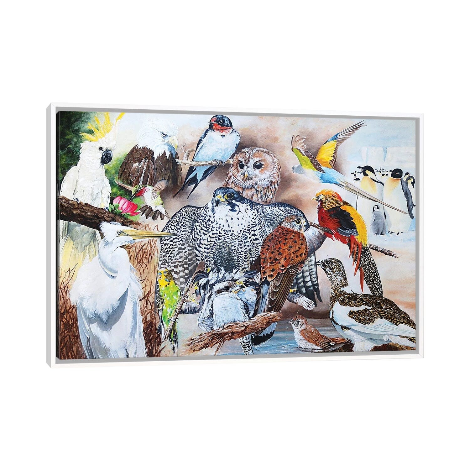 iCanvas "Birds Of the World" by Julian Wheat Framed|White