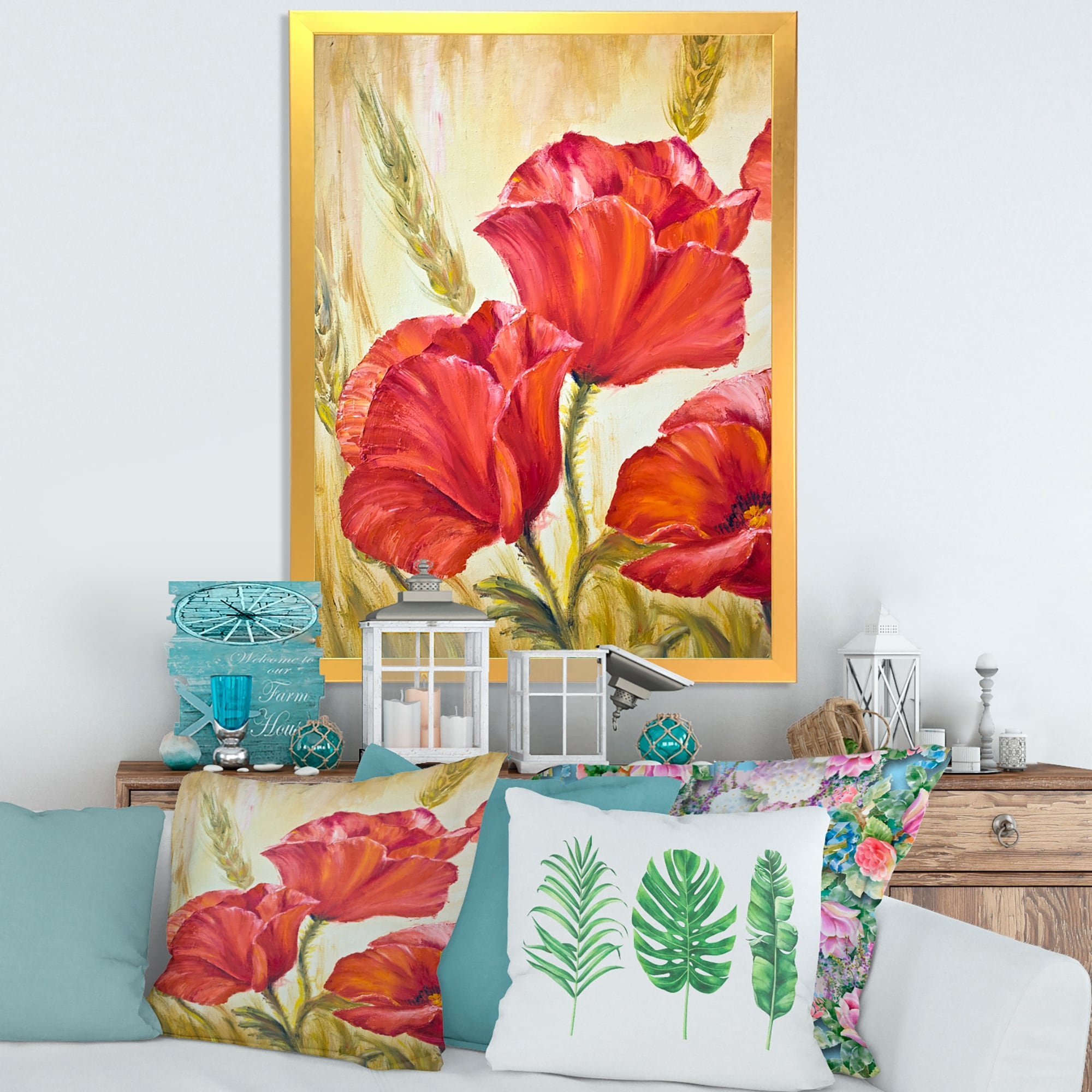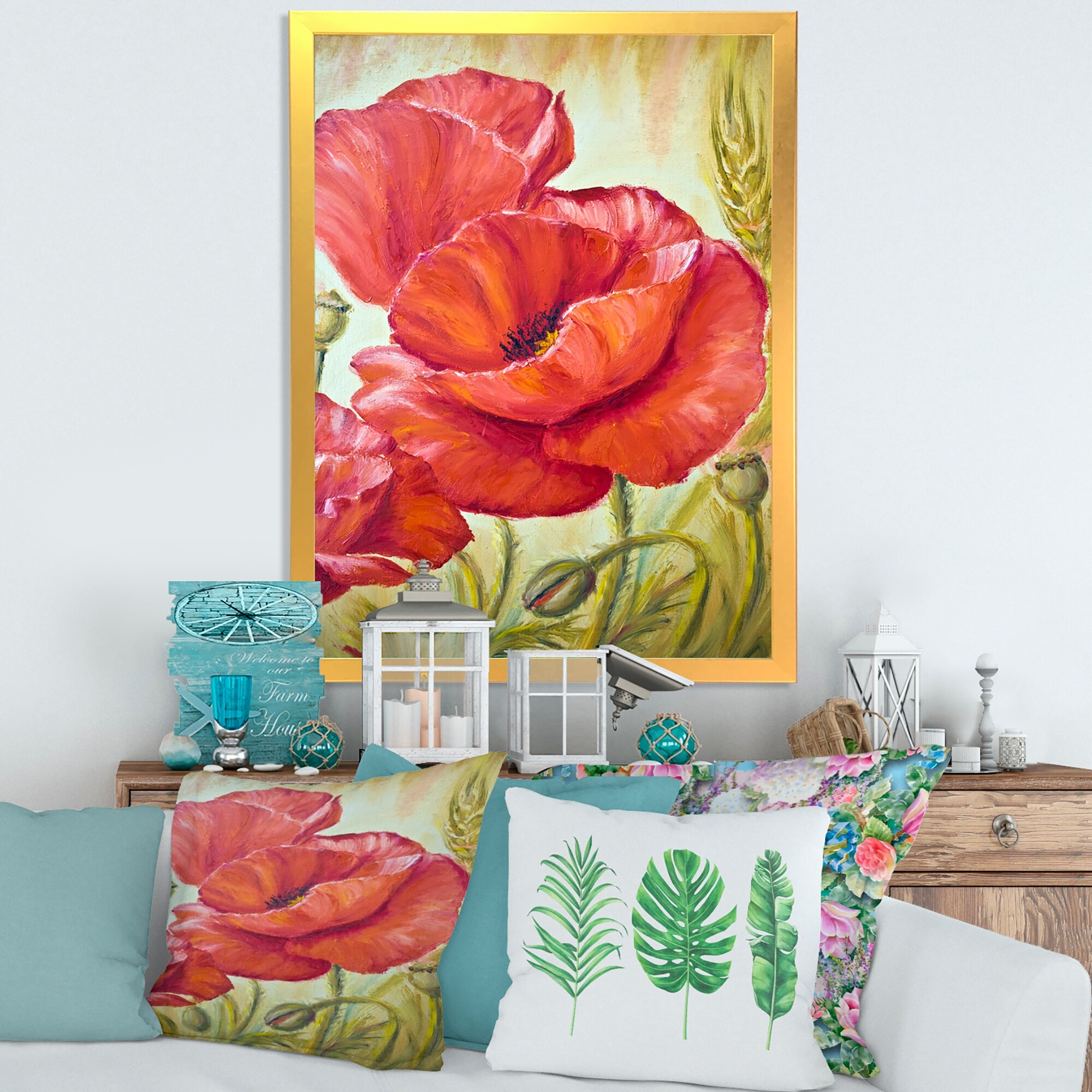 Designart "Blossoming Poppies in Wheat Fields I" Traditional Framed Art Print