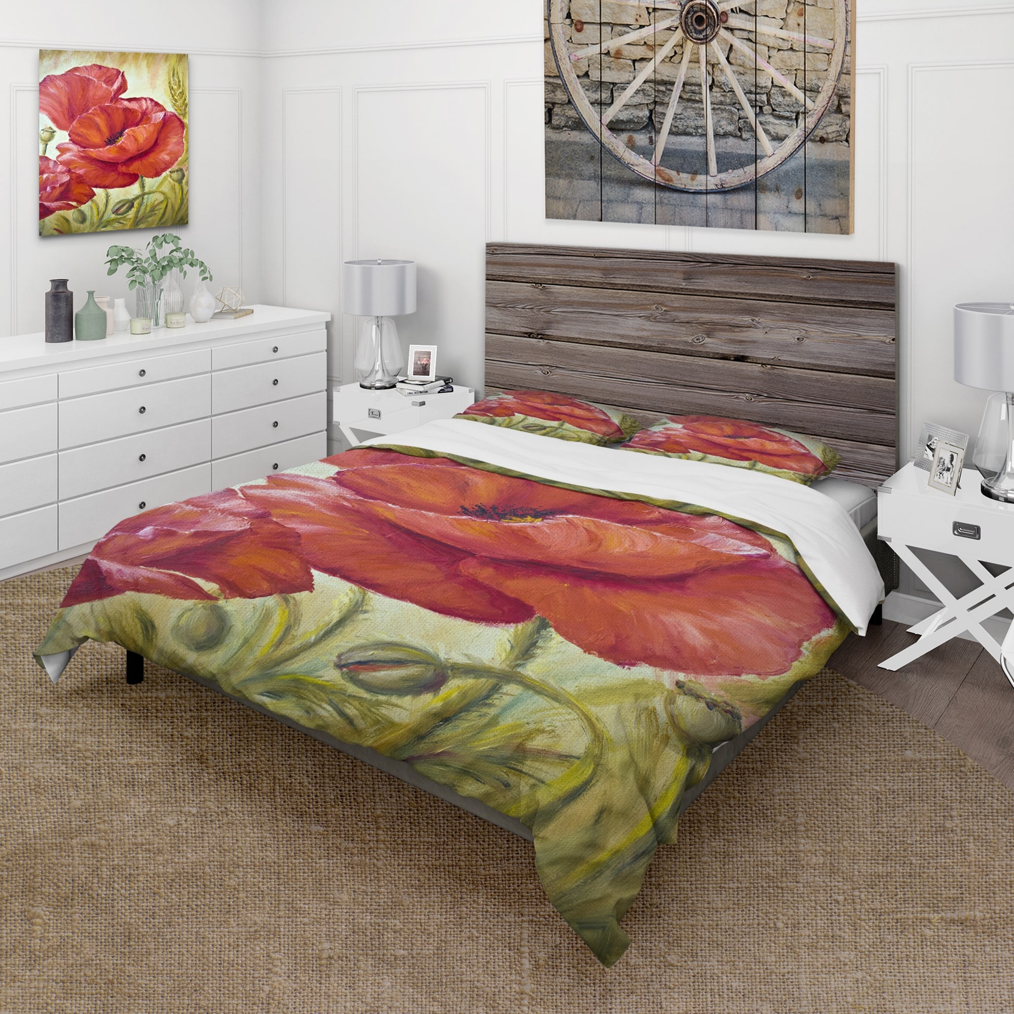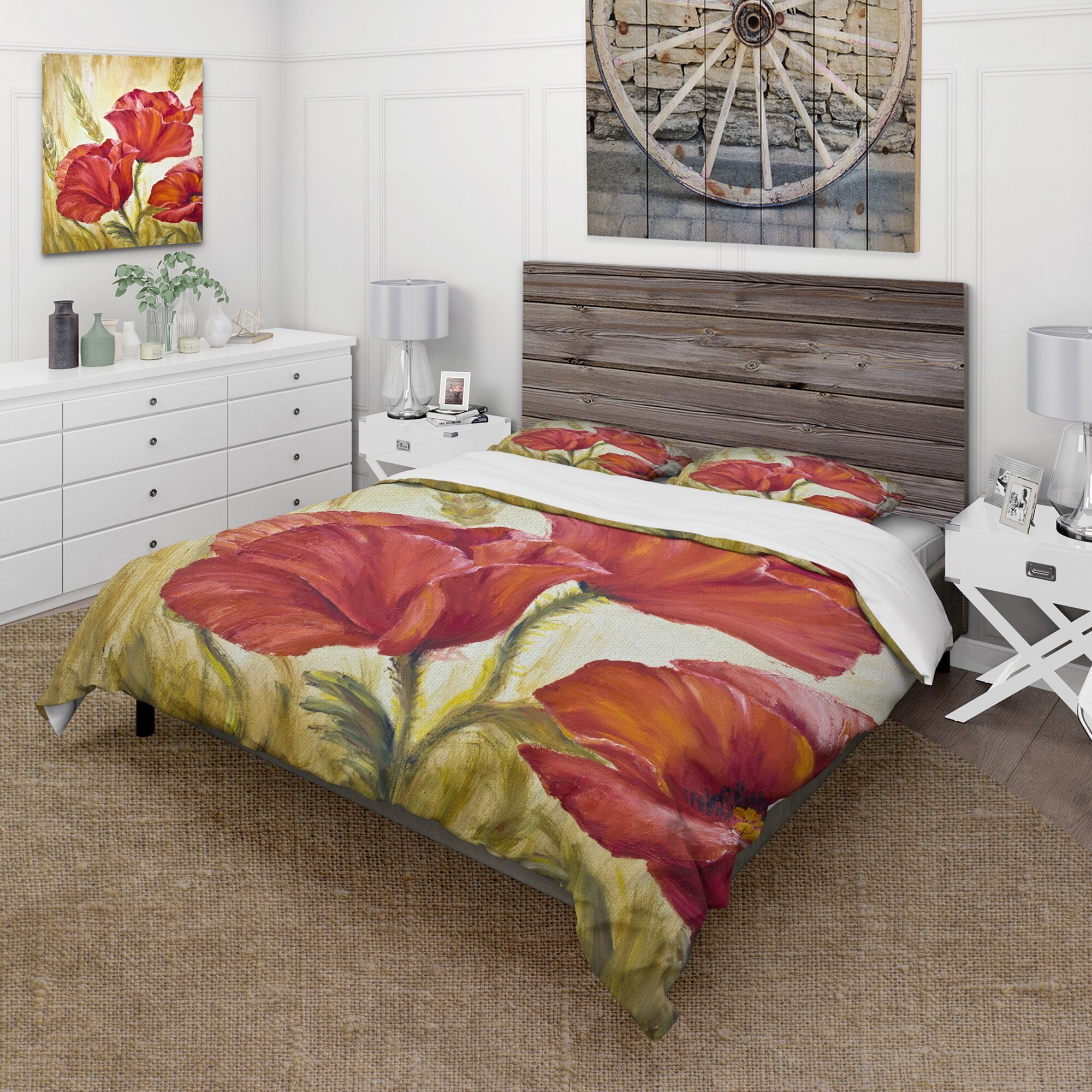 Designart 'Blossoming Poppies in Wheat Fields II' Traditional Duvet Cover Set
