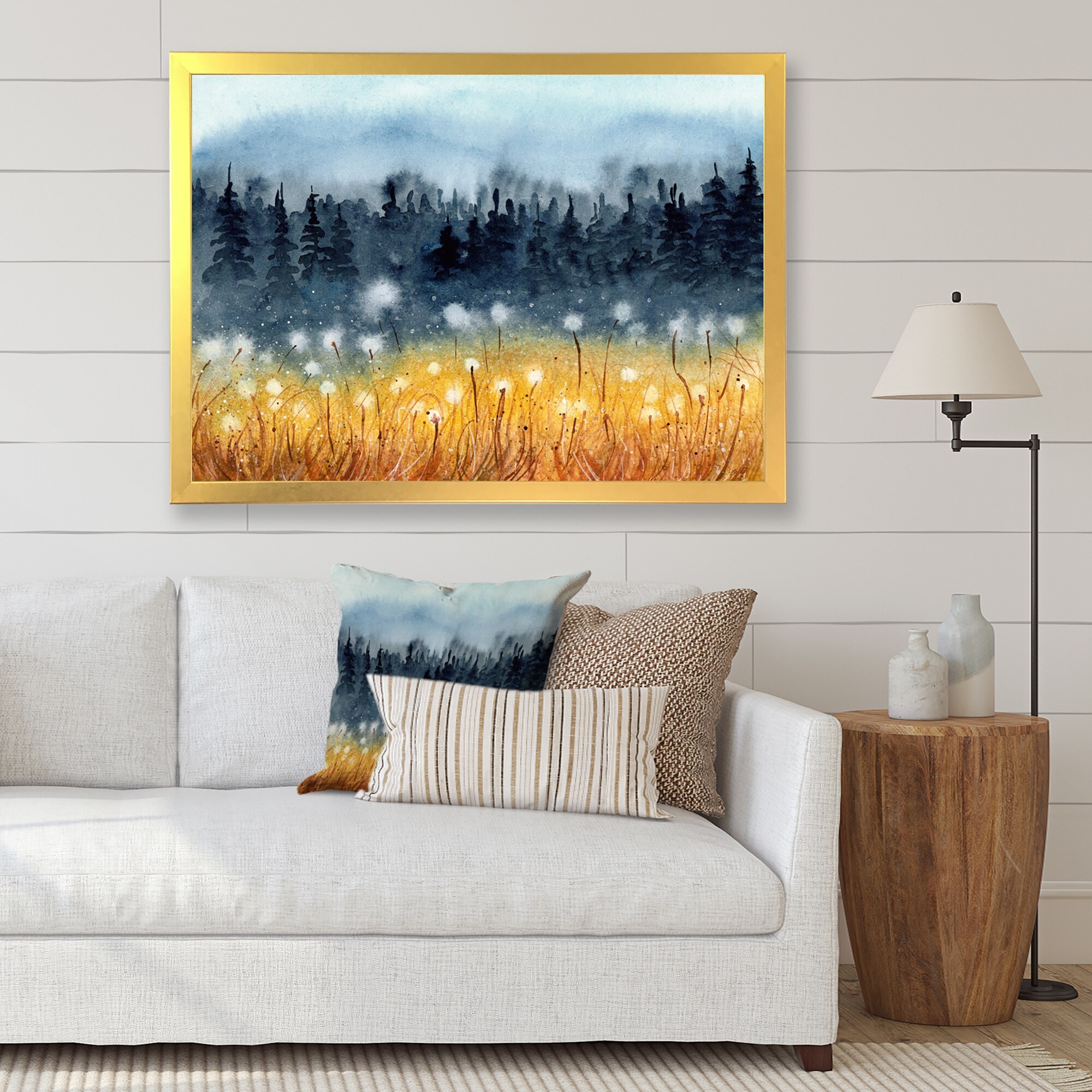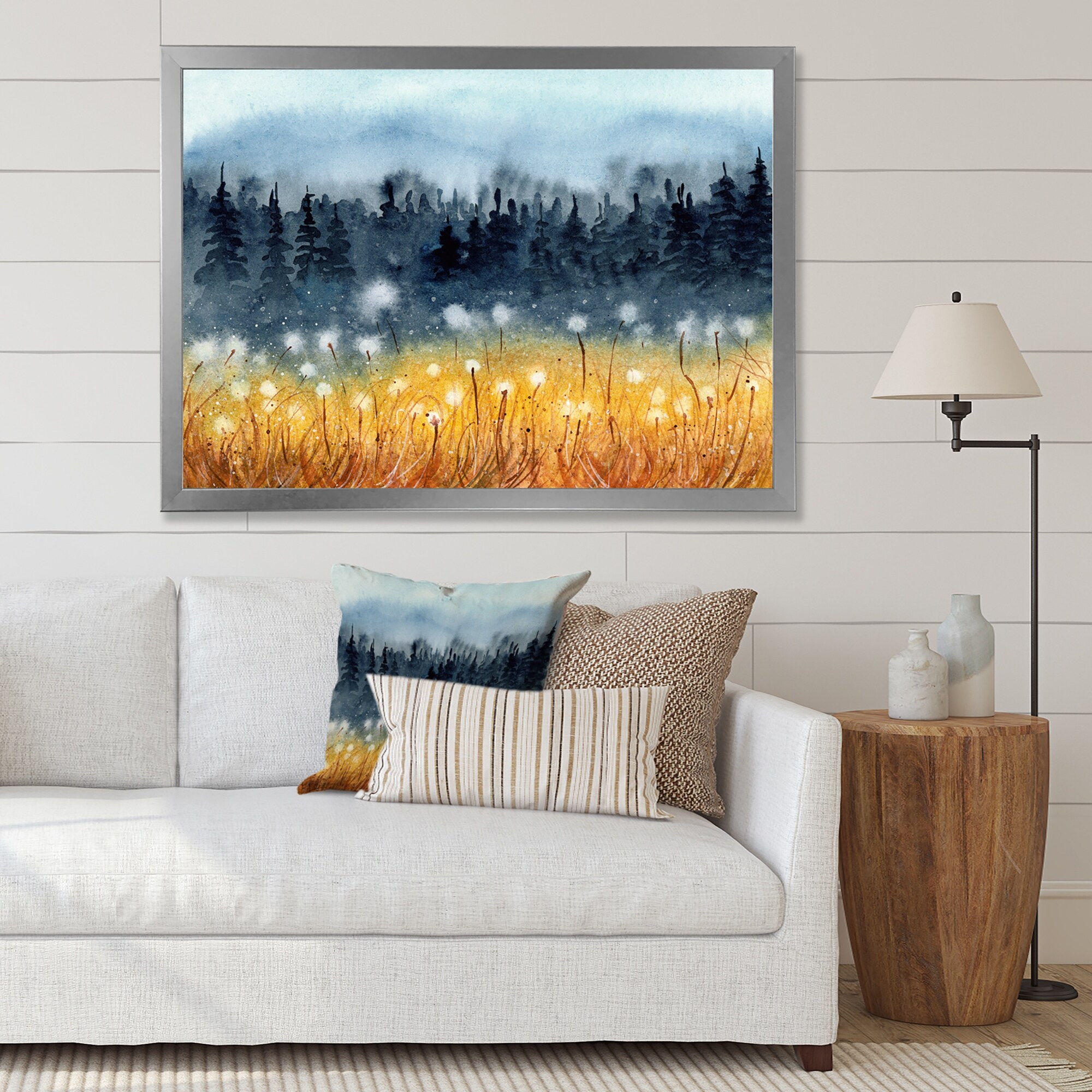 Designart "Landscape With A Field of Yellow Wheat" Traditional Framed Canvas Wall Art Print