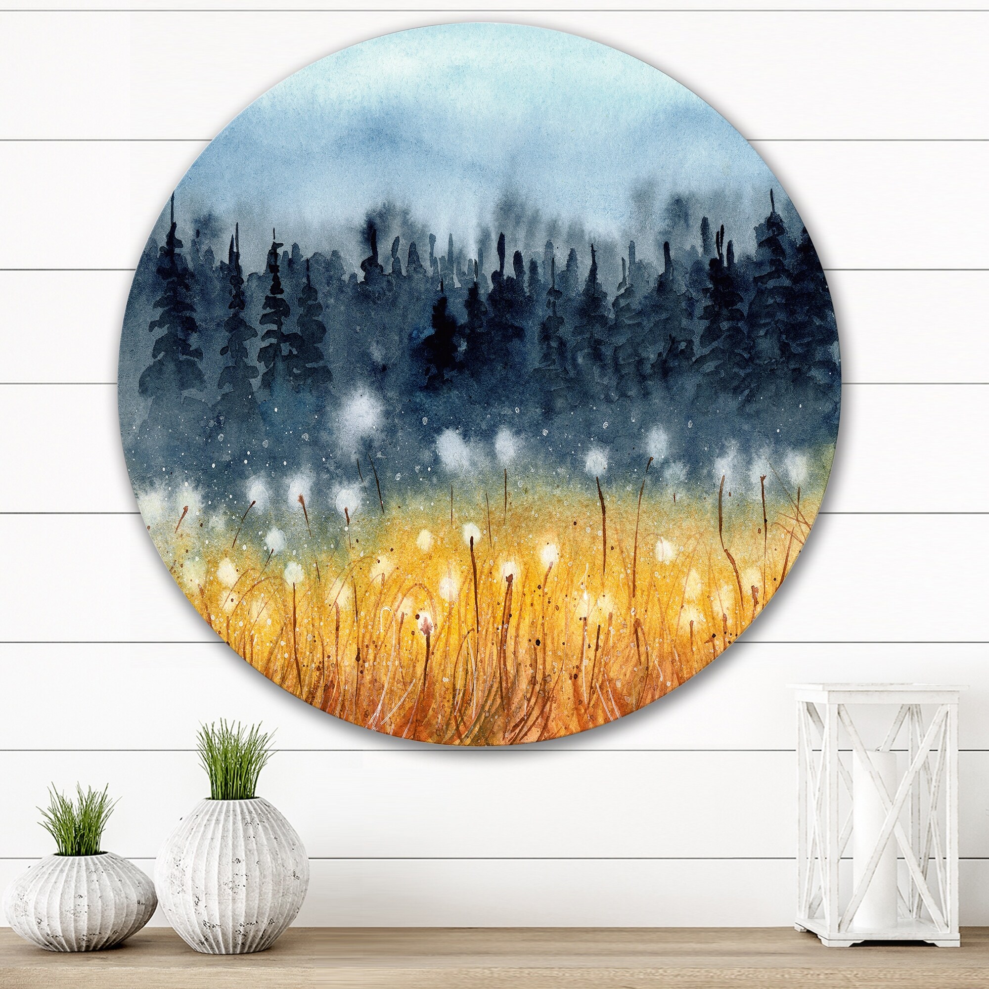 Designart 'Landscape With A Field of Yellow Wheat' Traditional Metal Circle Wall Art
