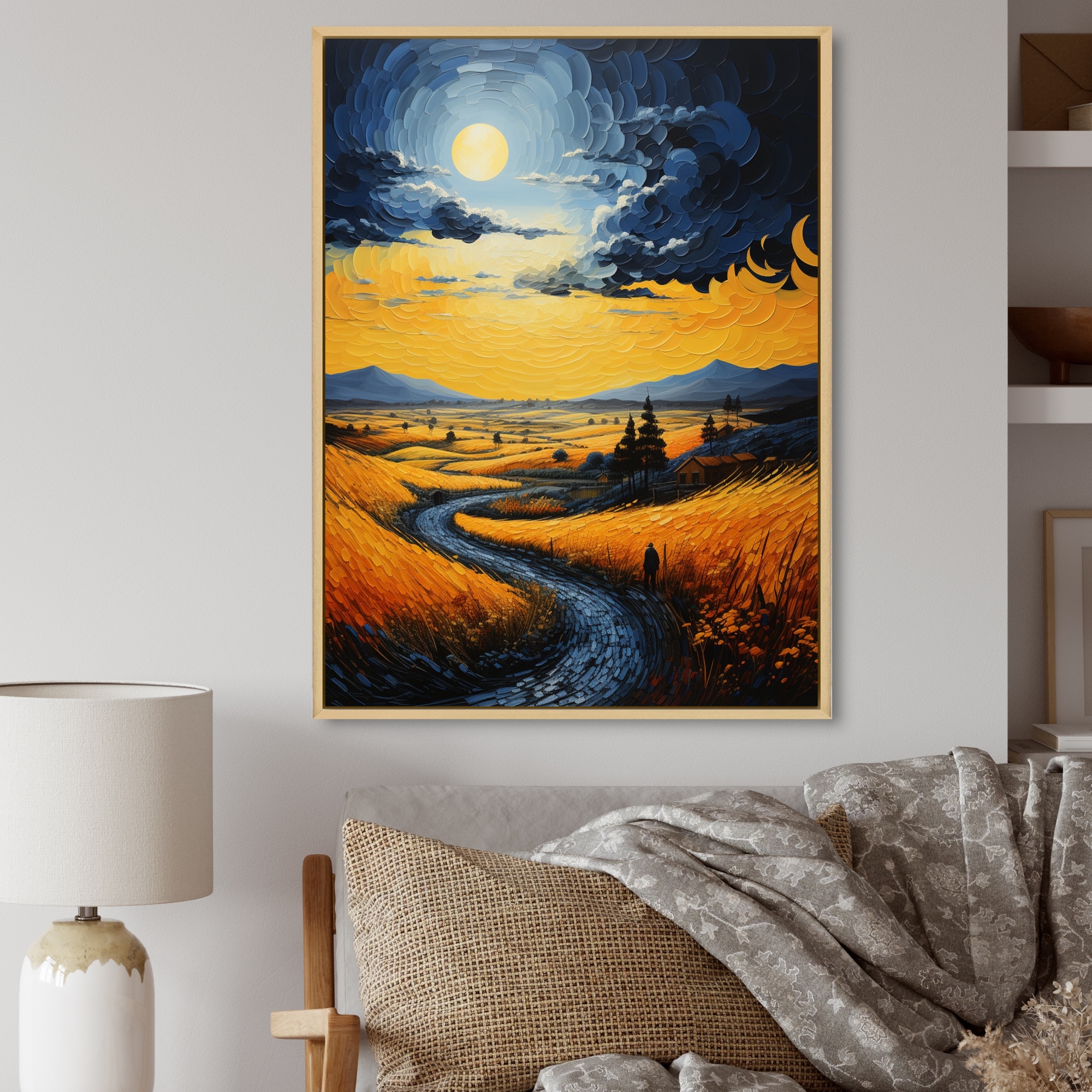 Designart "Vangogh Harvest Time in the Wheat Fields III" Vangogh Framed Wall Decor