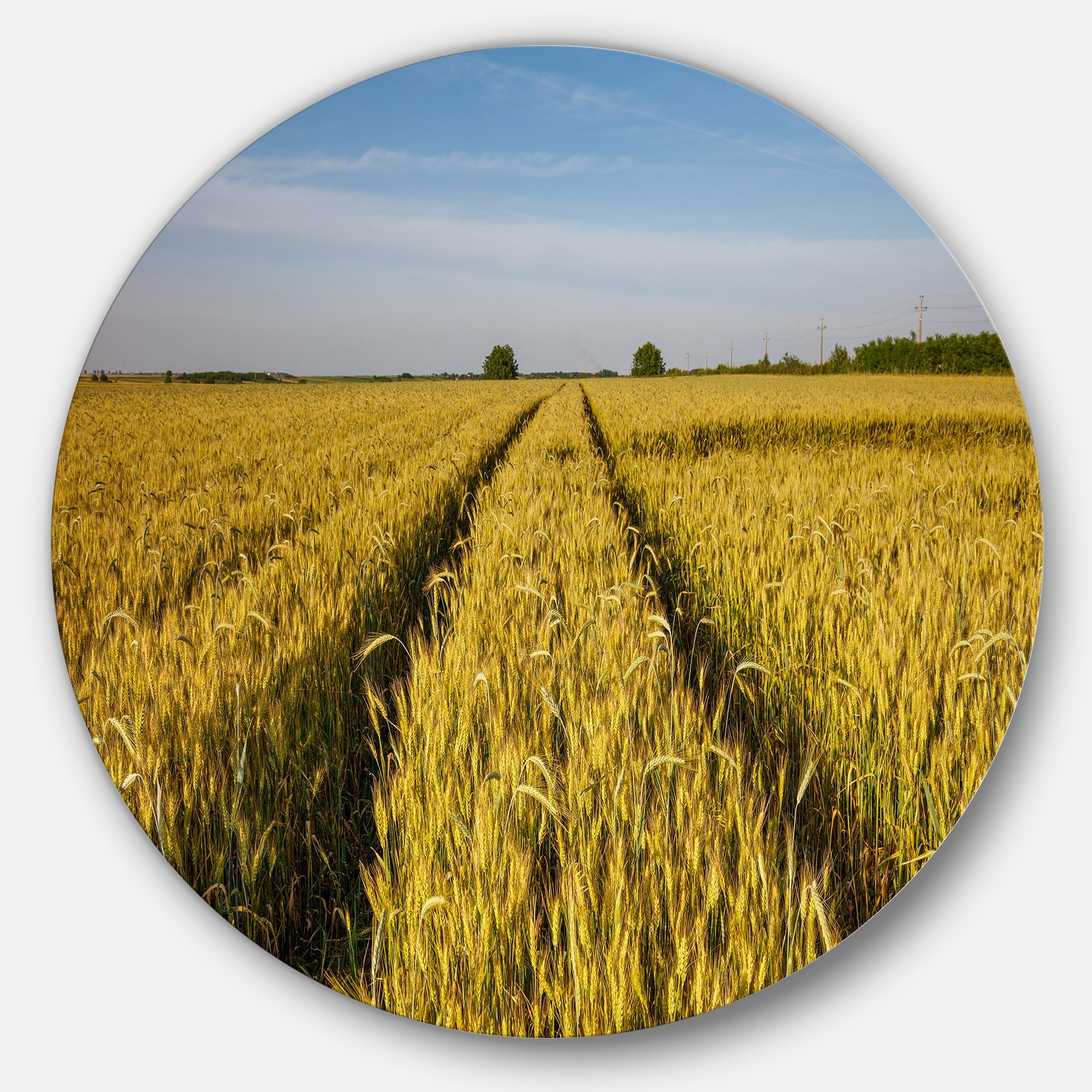 Designart 'Rural Road through Wheat Field' Landscape Disc Metal Wall Art