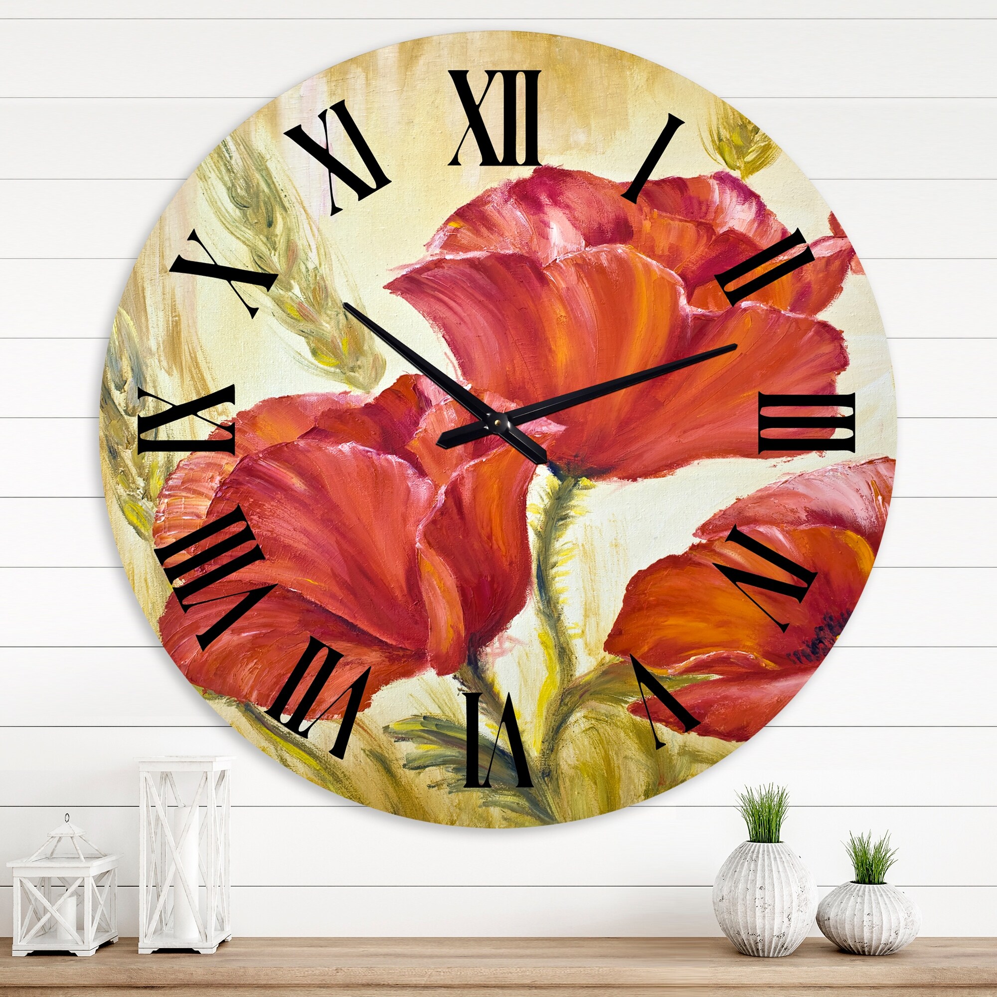 Designart 'Blossoming Poppies in Wheat Fields II' Traditional wall clock