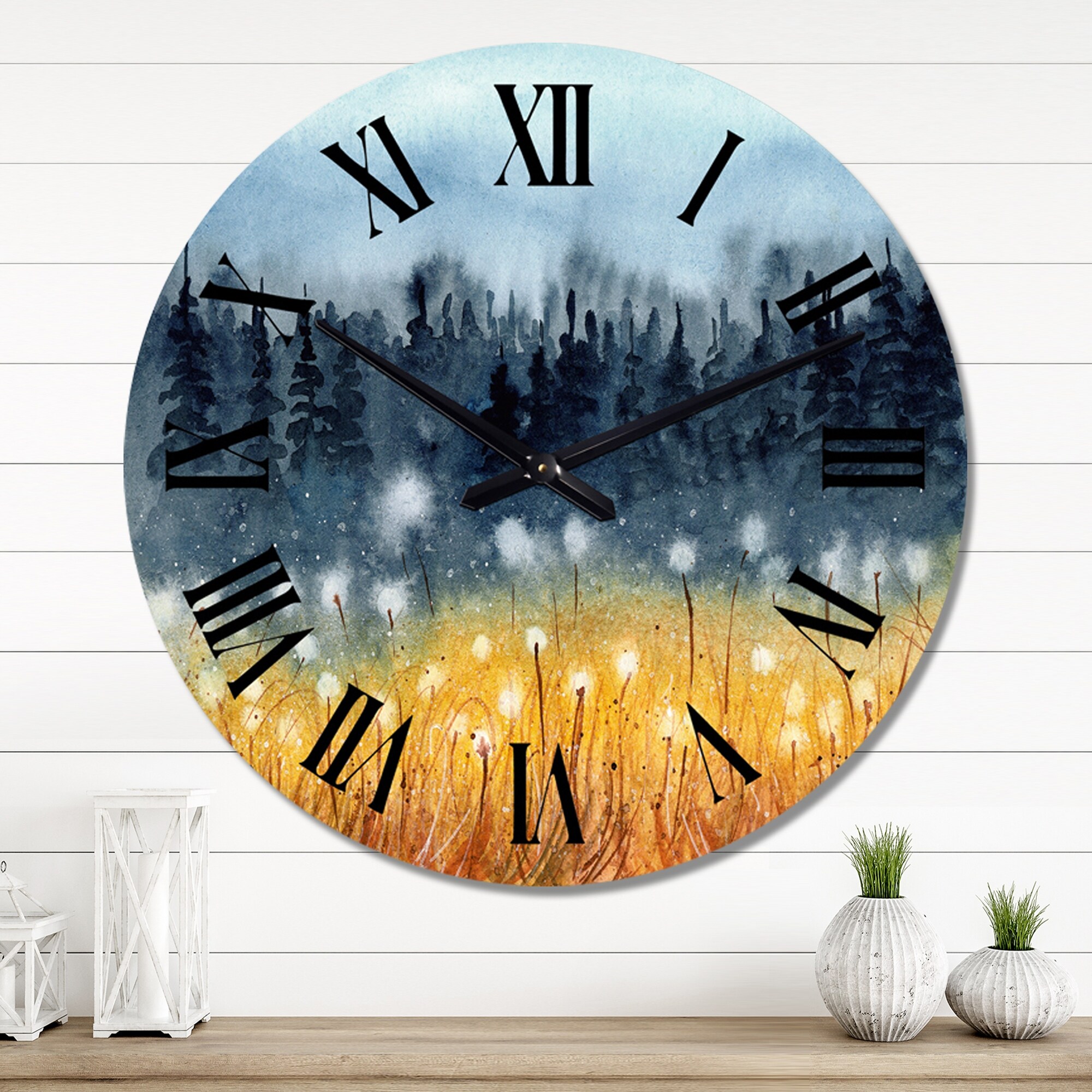 Designart 'Landscape With A Field of Yellow Wheat' Traditional wall clock