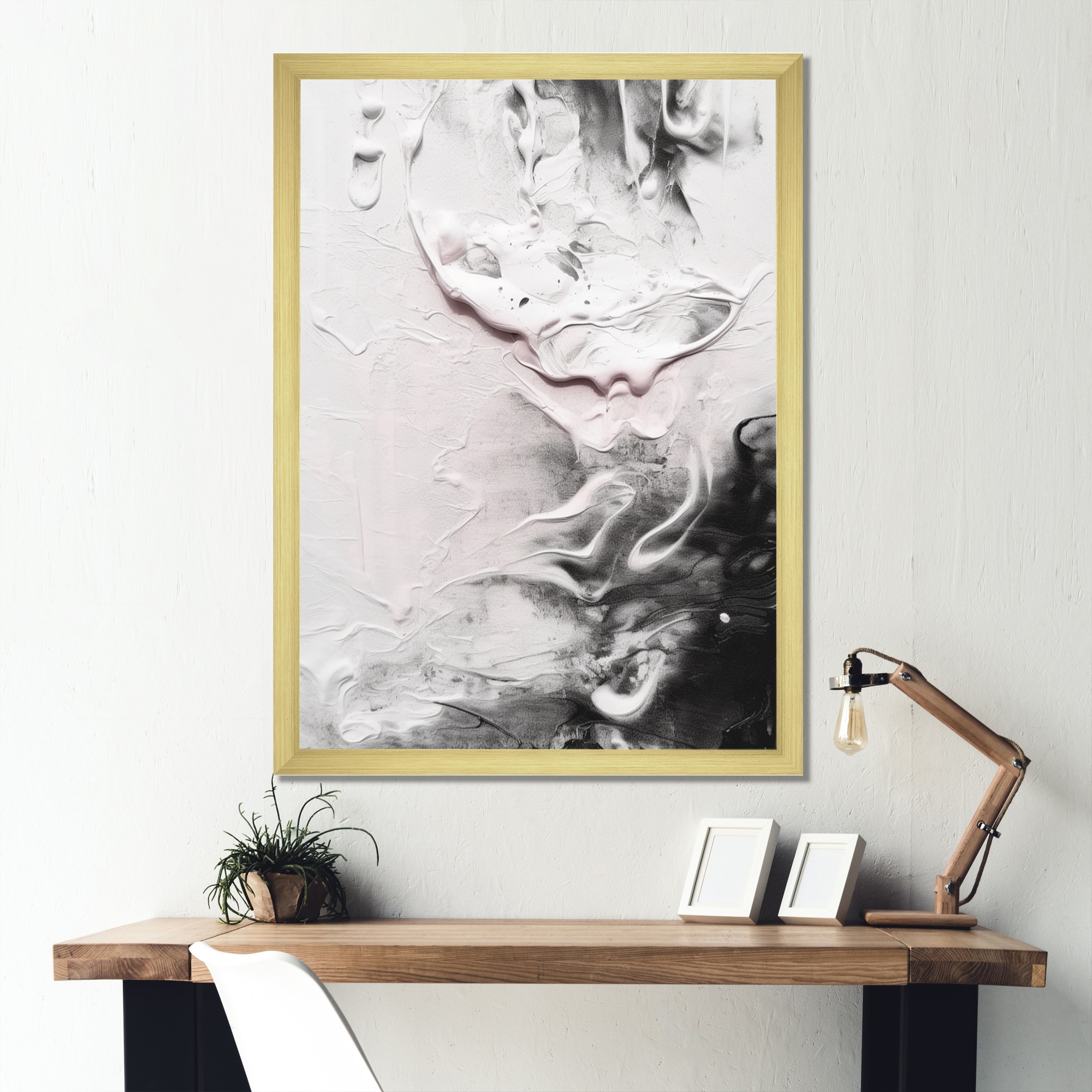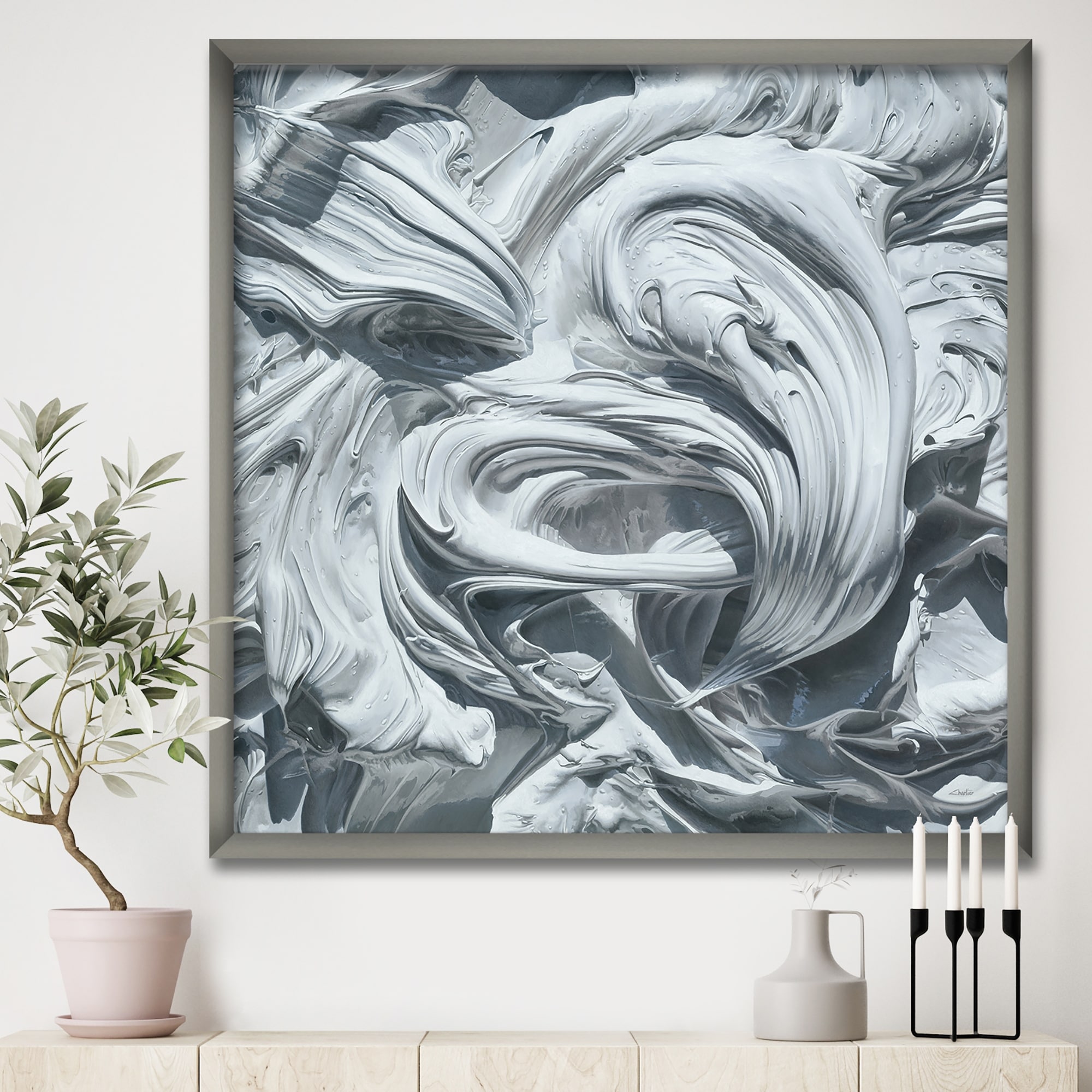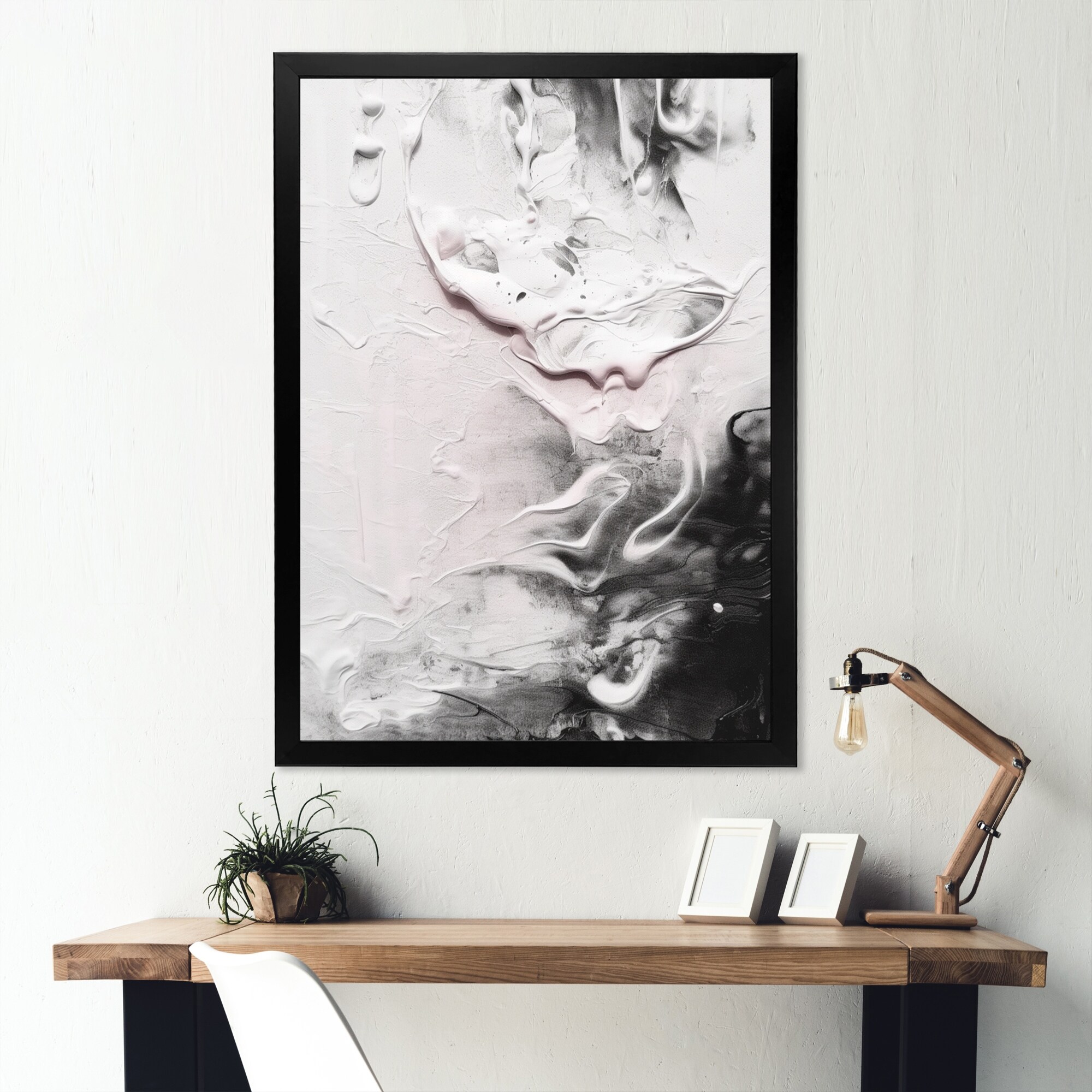 Designart "Waves of White Gray Paint" Modern & Contemporary Premium Framed Art Print