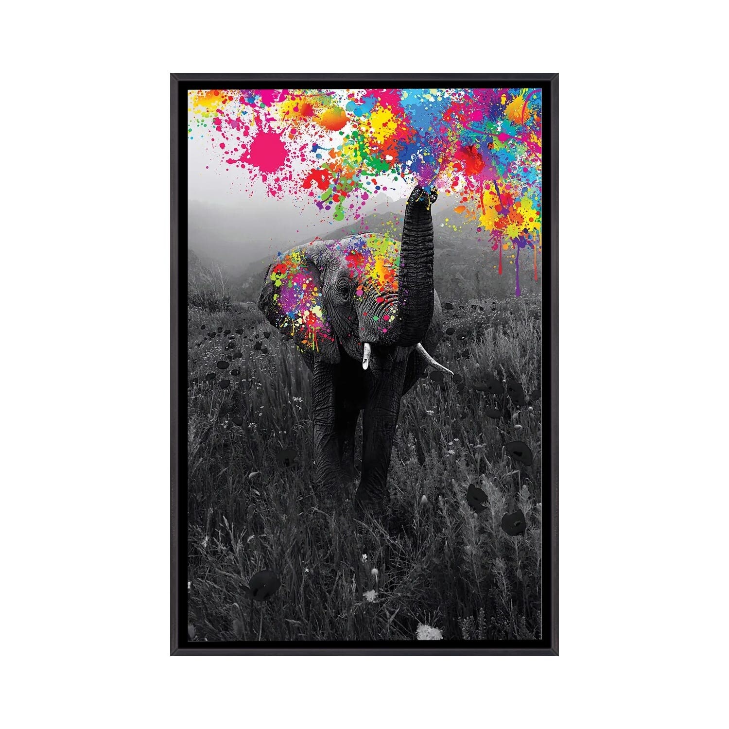 iCanvas "Elephant Playing With Paint in Black And White Nature" by GEN Z Framed