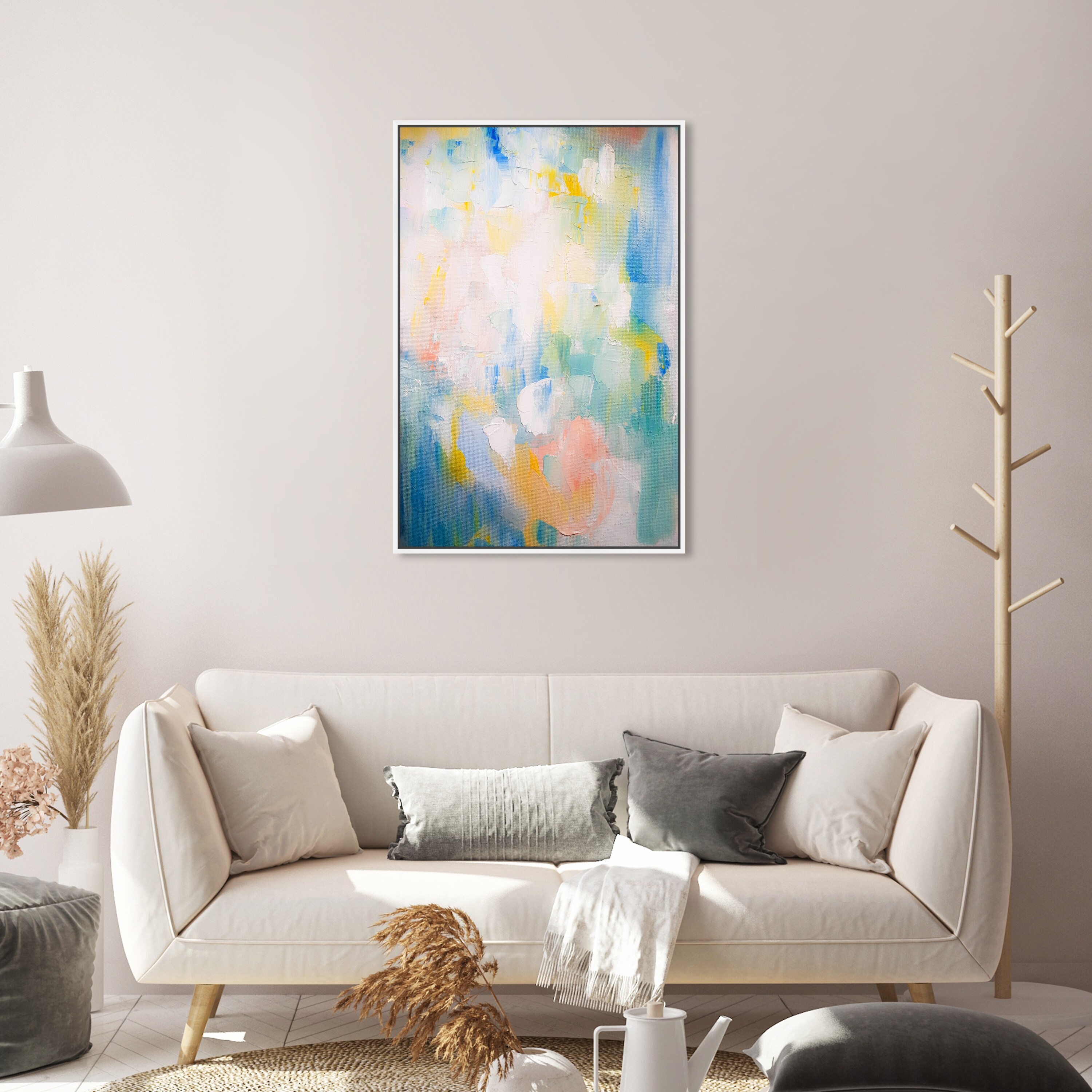 Oliver Gal 'Romance Morning' Abstract Wall Art Framed Canvas Print Paint - Blue, White