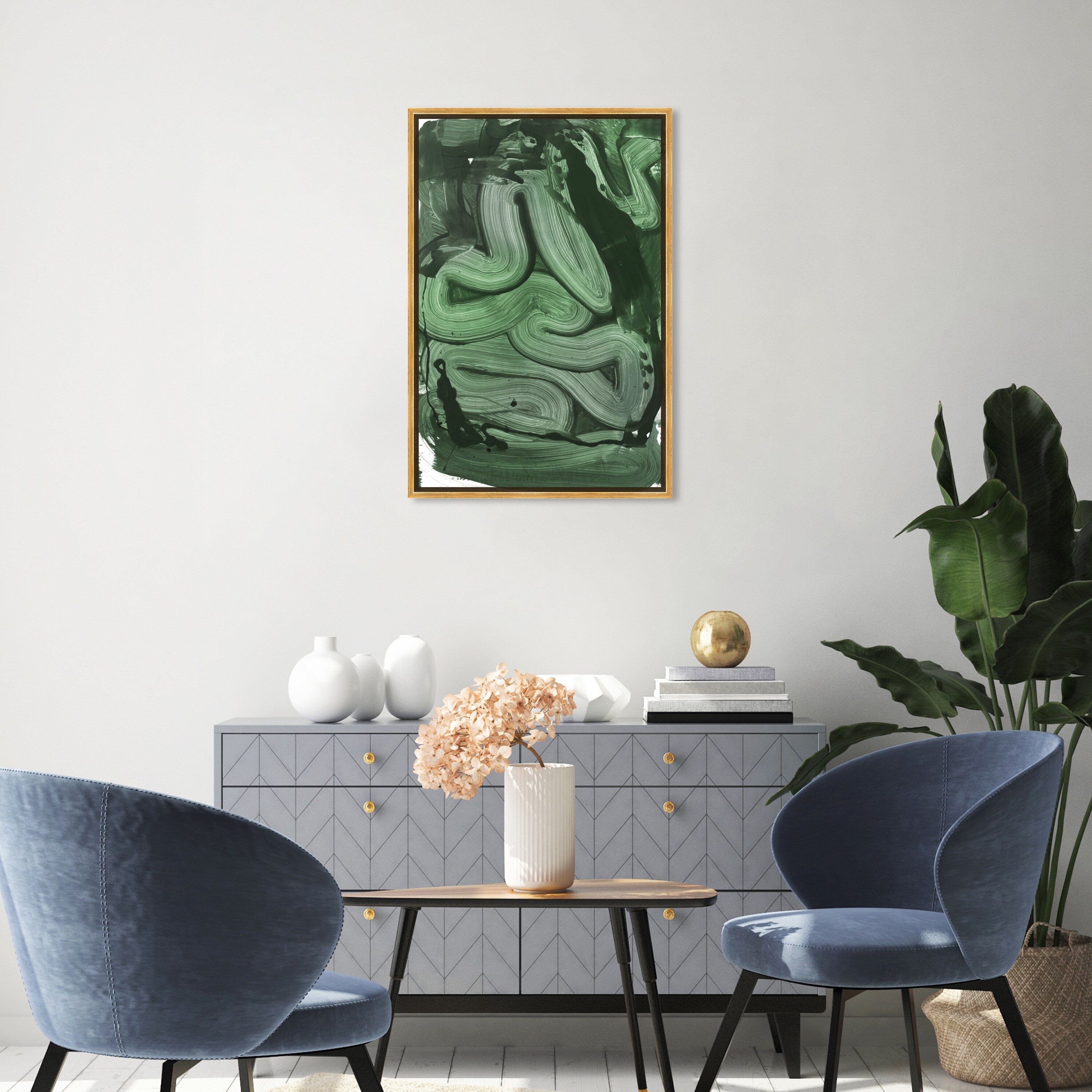 Oliver Gal 'Tiago Magro - Swirling Green' Abstract Wall Art Framed Canvas Print Paint - Green, White