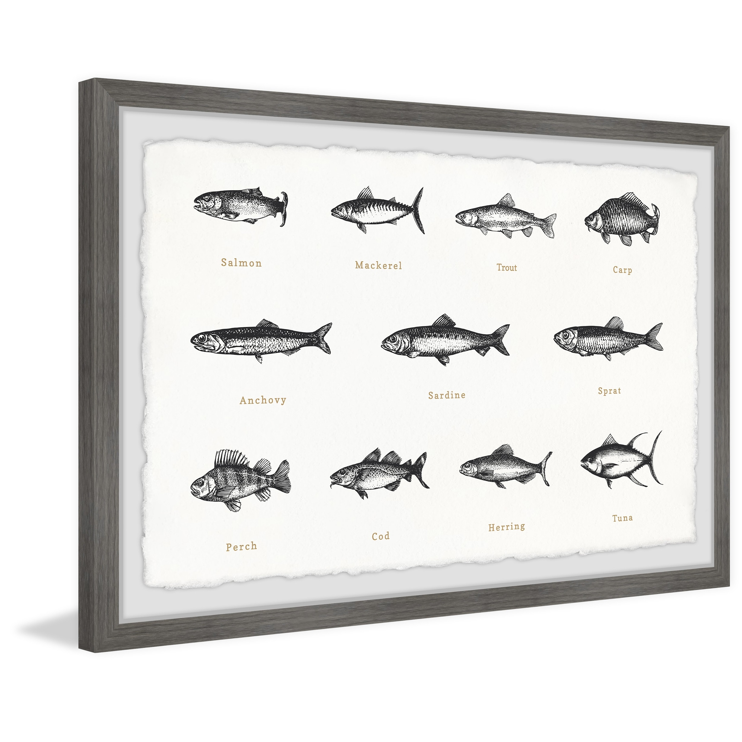 'Deep-Sea Fishes in White' Framed Painting Print
