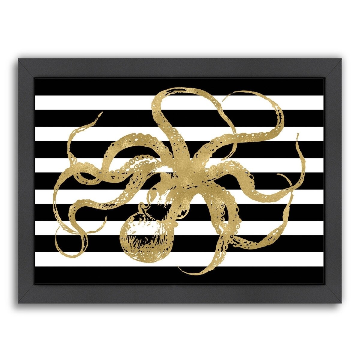 Designart "Blue And White Striped Geometrics" Patterned Framed Art Print