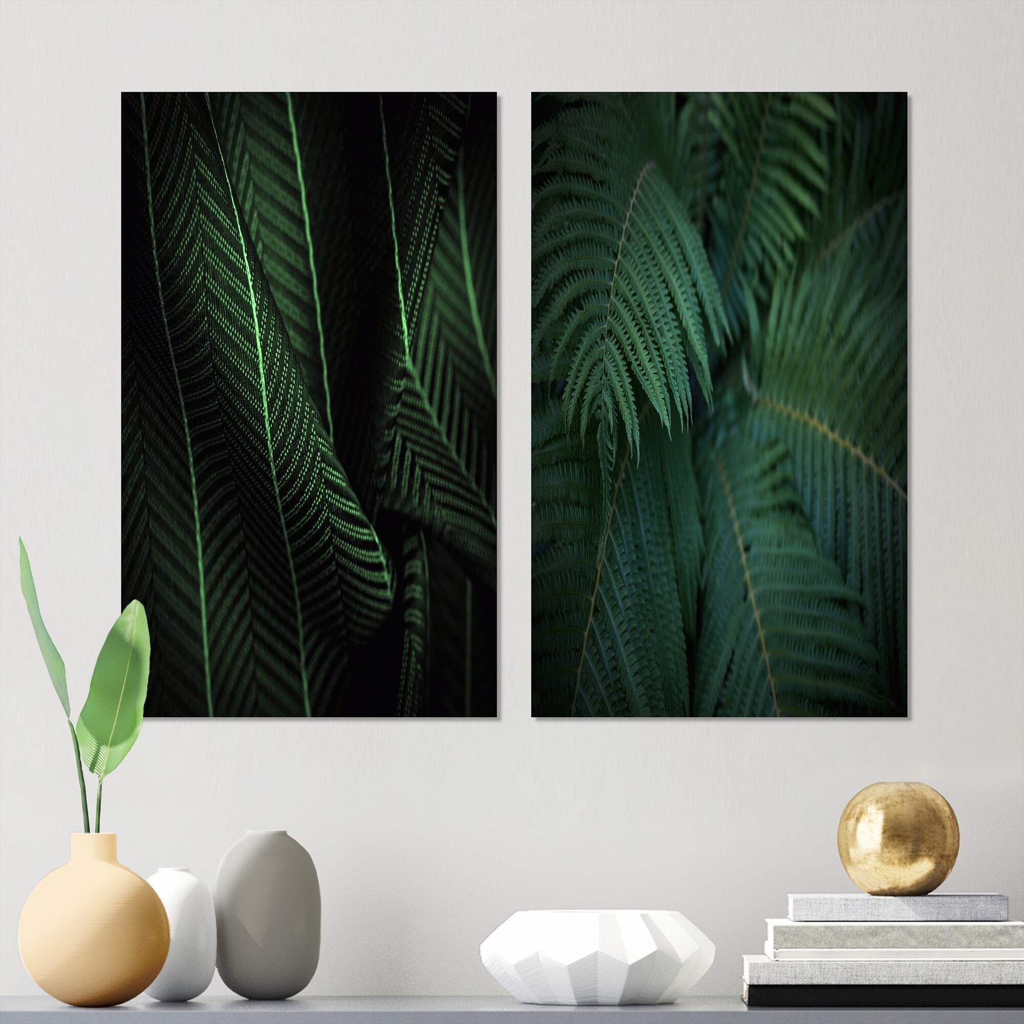 Designart 'Dark Green Silk Fabric With A Thin White Stripe' Traditional Art Set of 2 Pieces