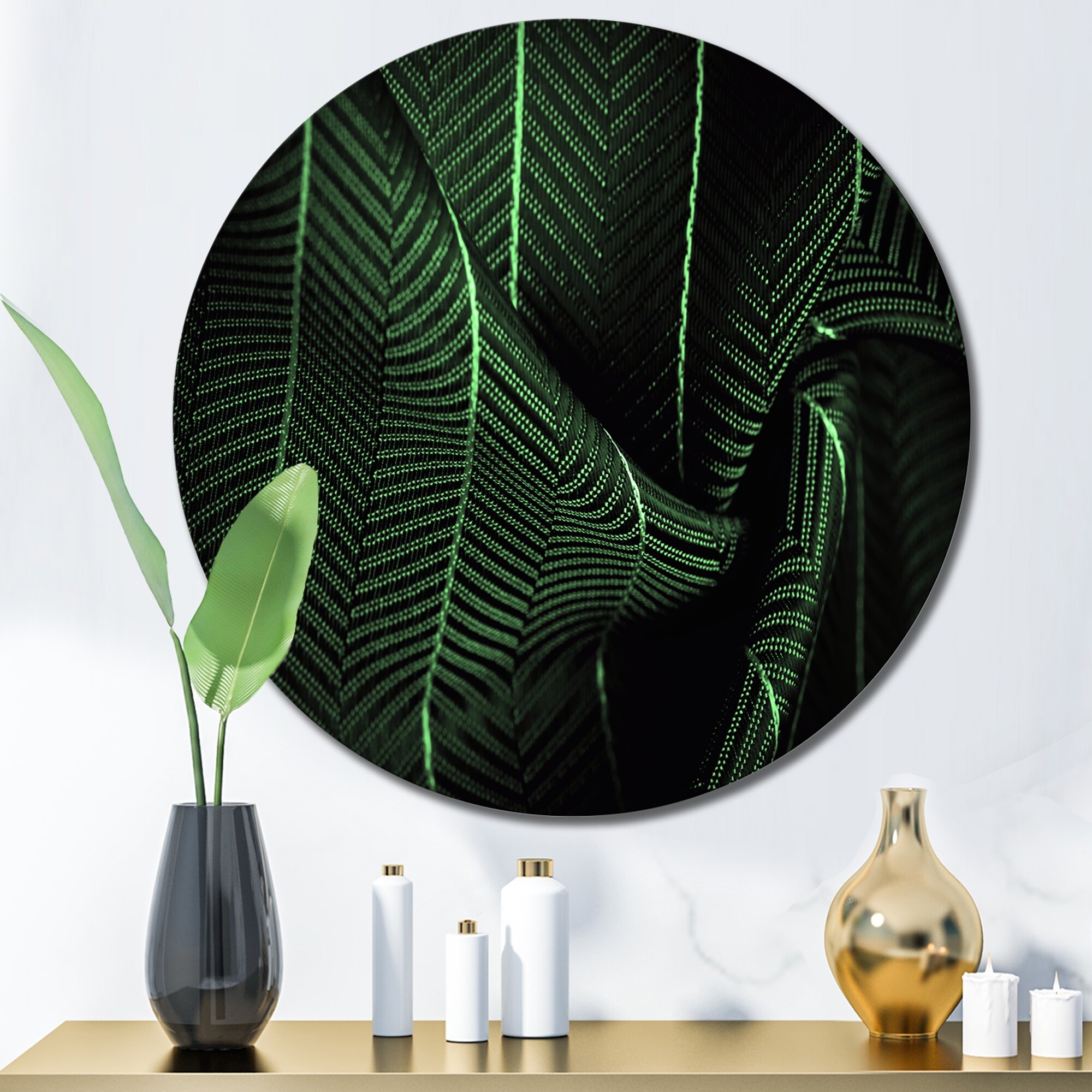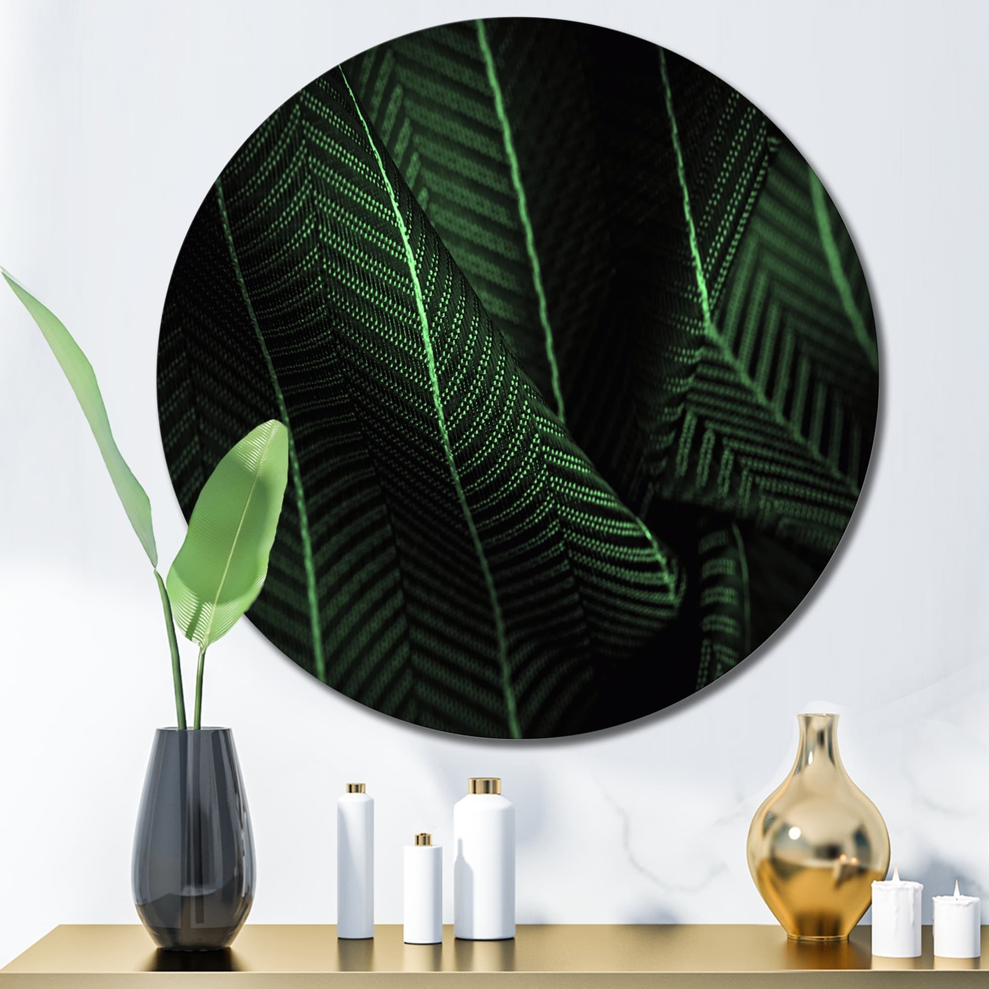 Designart 'Deep Green Silk Fabric With A Thin White Stripe II' Patterned Metal Circle Wall Art