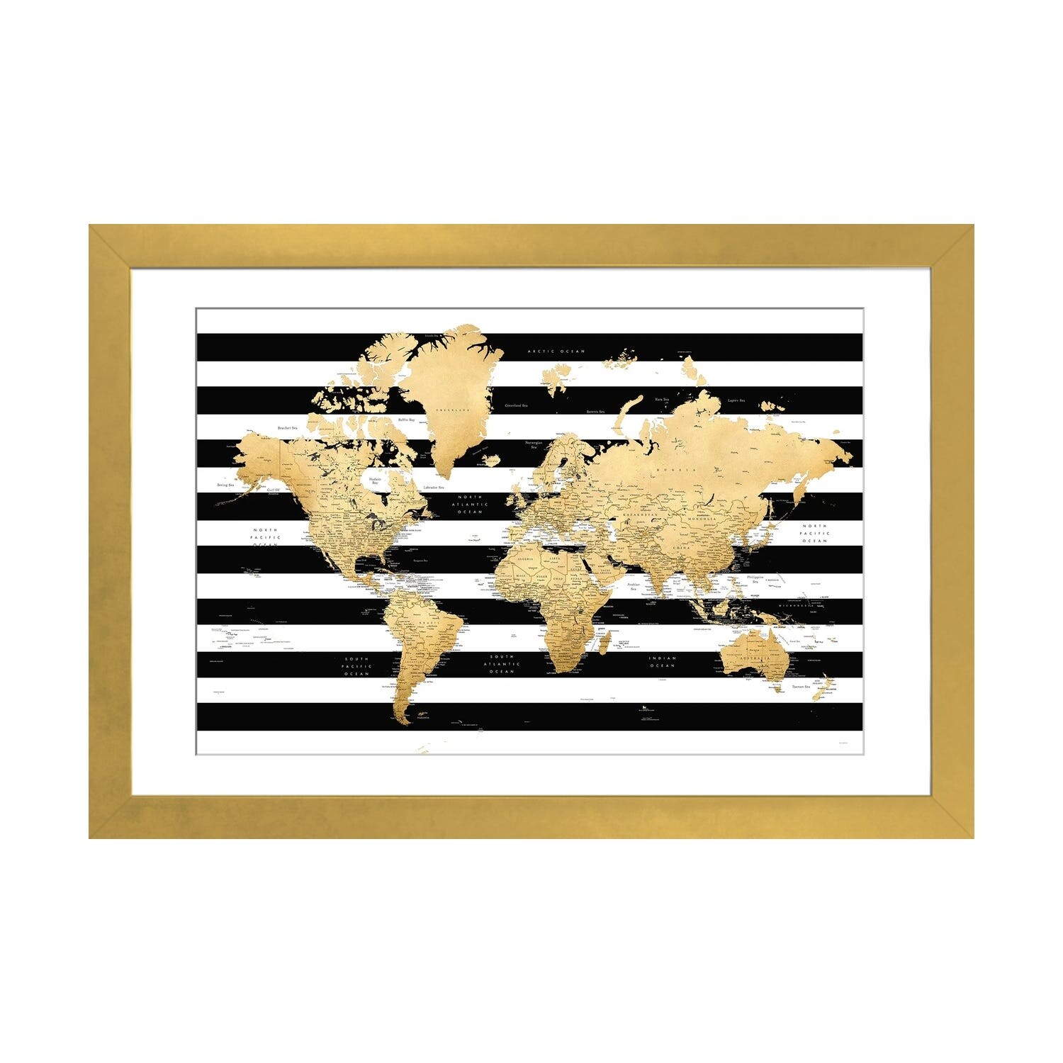 iCanvas "Detailed World Map With Cities And Black And White Stripes, Harper" by blursbyai