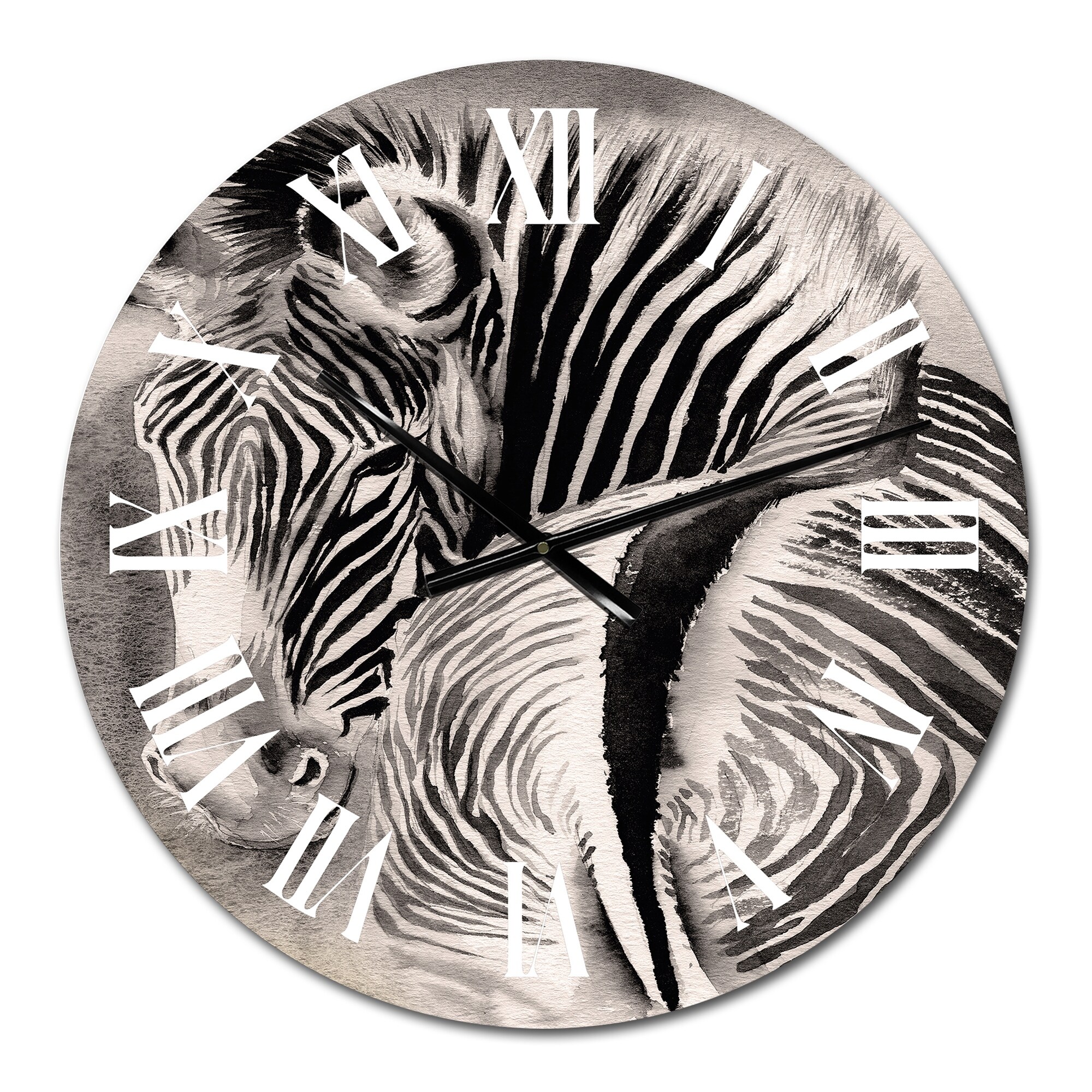 Designart 'Zebra With Contrasting Black And White Stripes IV' Traditional wall clock